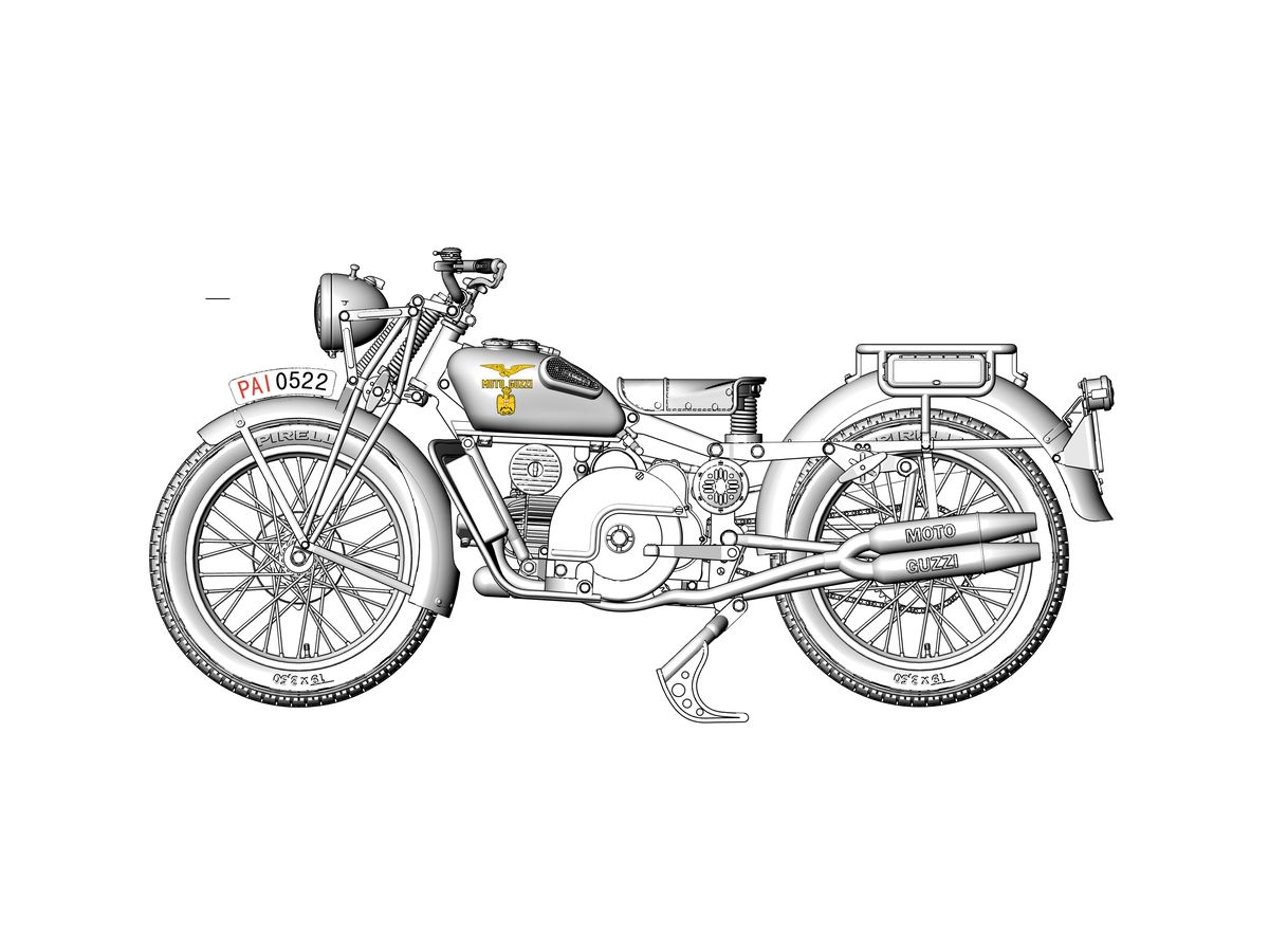 第二次大戦のイタリア軍や警察で使われた軍用オートバイ、モトグッチAlce 500を再現するキットです。