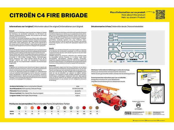 1/24スケールで1930年代にフランスで使用されていた消防車、シトロエンC4の消防車仕様を再現したプラスチックモデル組み立てキットです。