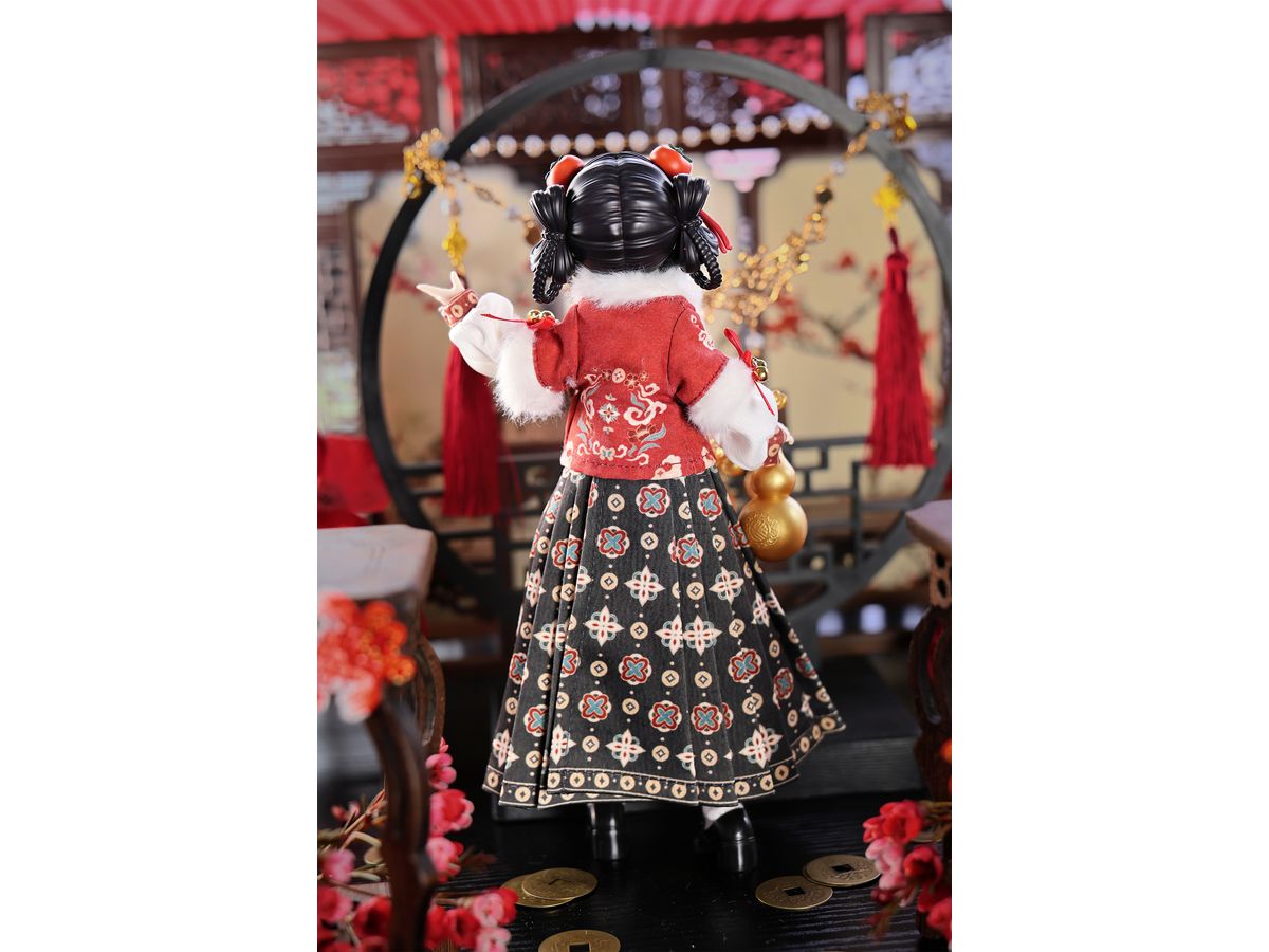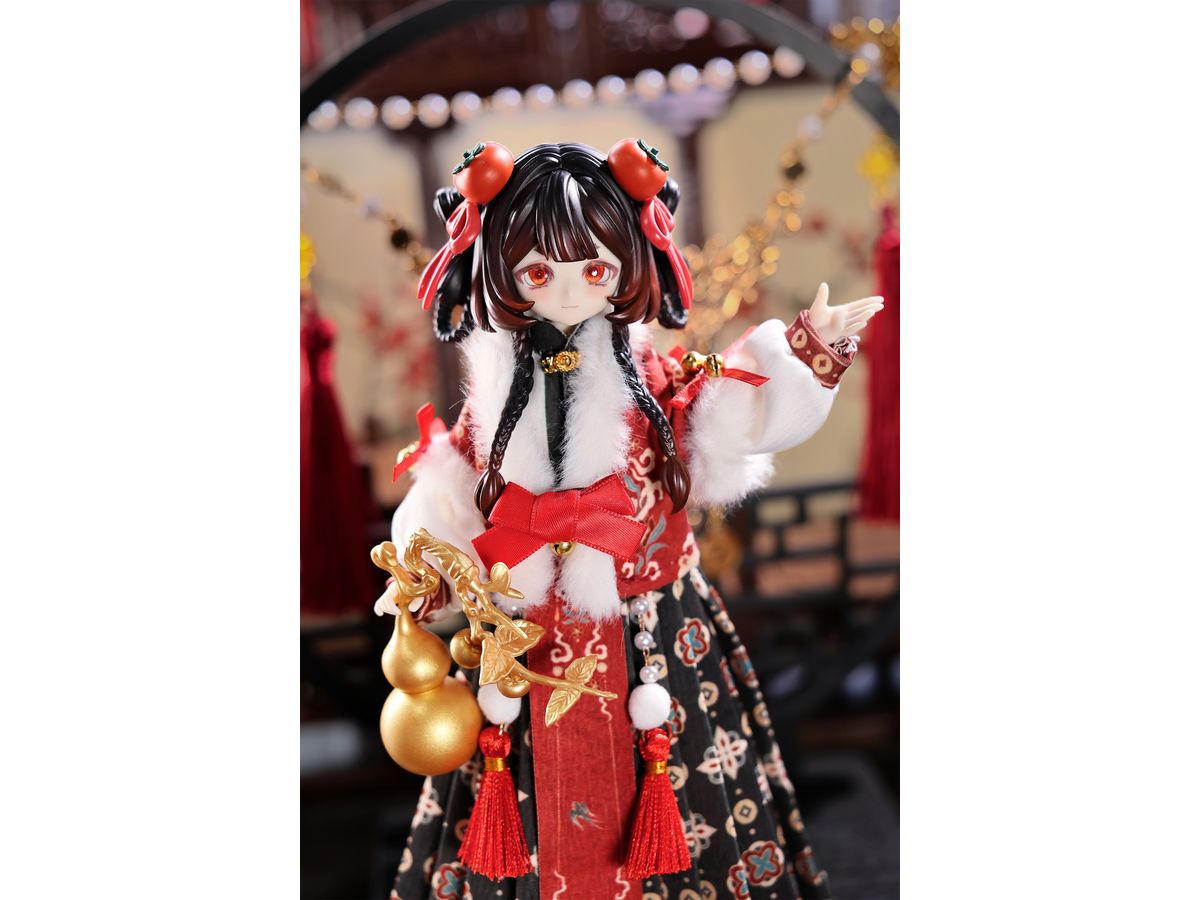 本作では、少女の装いに柿をモチーフとした髪飾りや装飾が随所にあしらわれ、華やかで上品な中華風スタイルに仕上げられています。