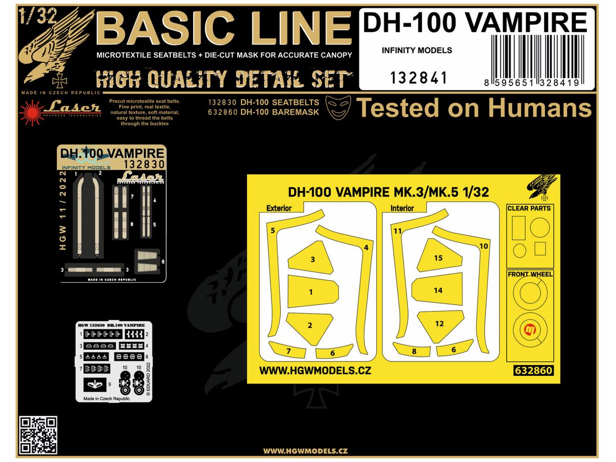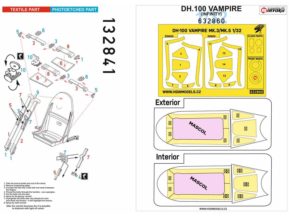 1/32 DH-100 ヴァンパイア 布製シートベルト w/両面塗装マスクシール (インフィニティモデルズ用)