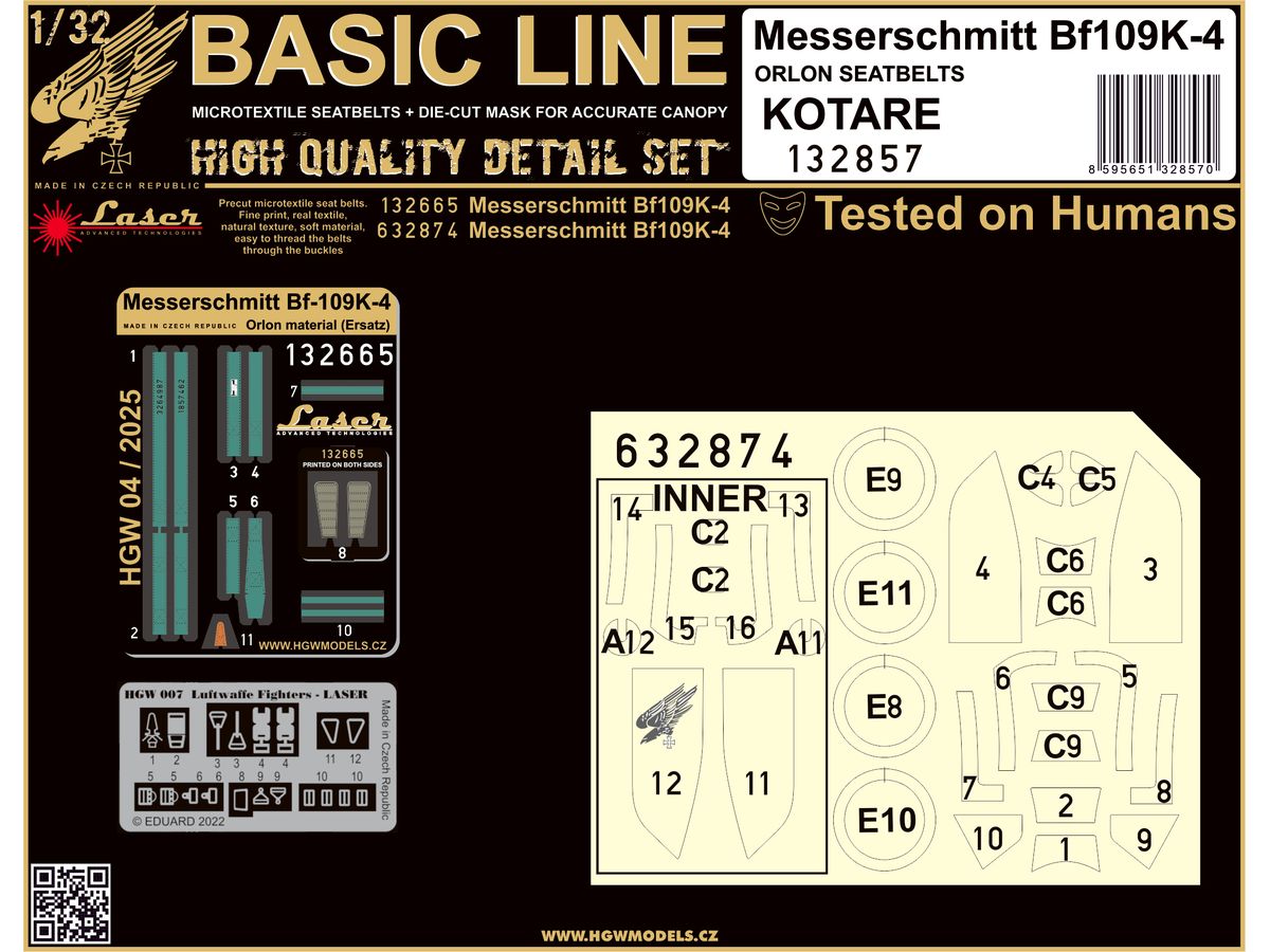 1/32 Bf109K-4 布製シートベルト (合成繊維タイプ)w/両面塗装マスクシール (コータリ用)