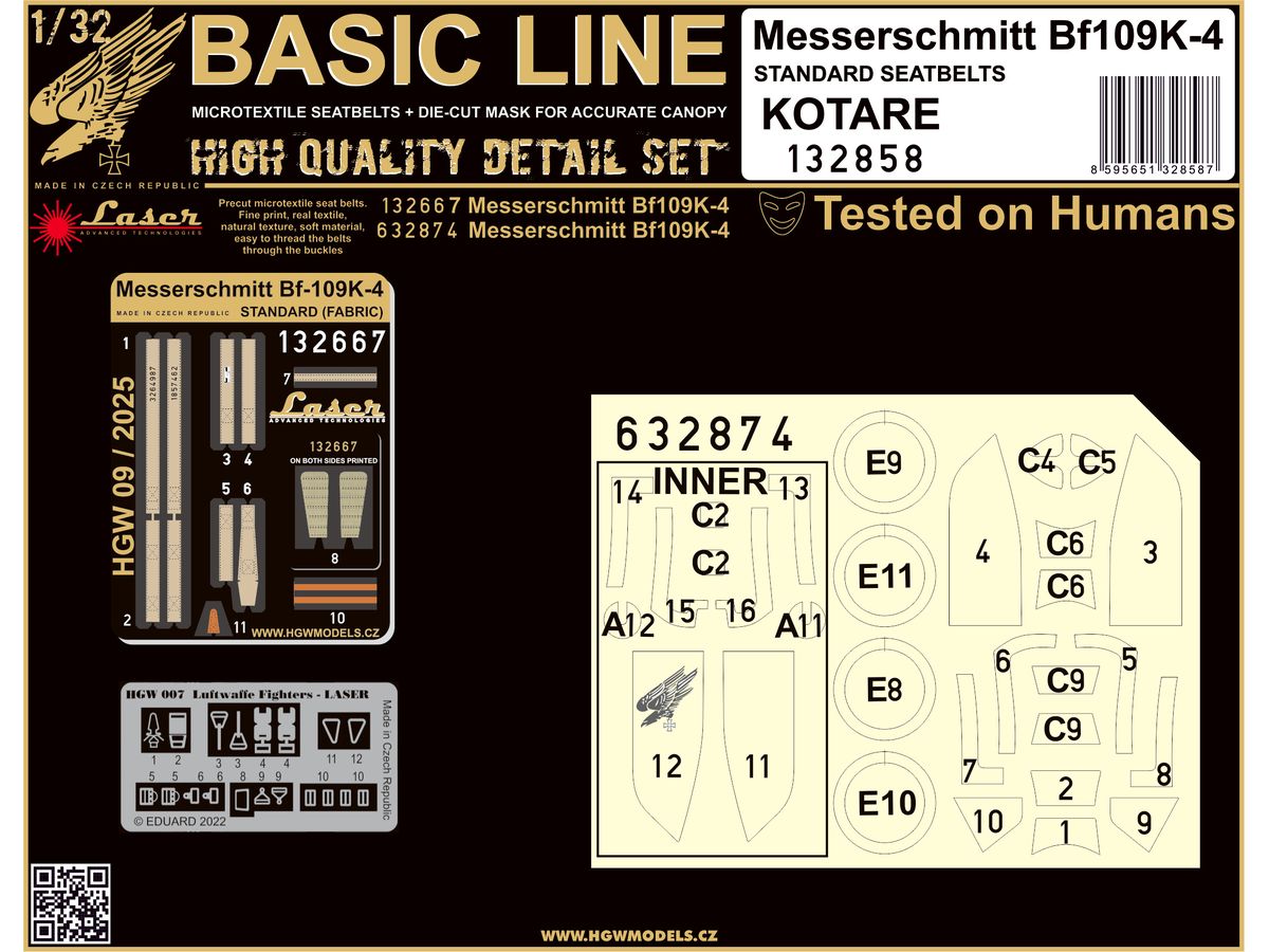 1/32 Bf109K-4 布製シートベルト (天然繊維タイプ)w/両面塗装マスクシール (コータリ用)