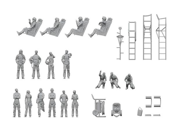 ACES Ⅱシート+パイロット x4、パイロット立像 x4、グランドクルー x13 消火器 x2、ラダー各種(F-4、F-16、F-16new、F-15用)、車輪止めチョーク、バッグほかアクセサリー