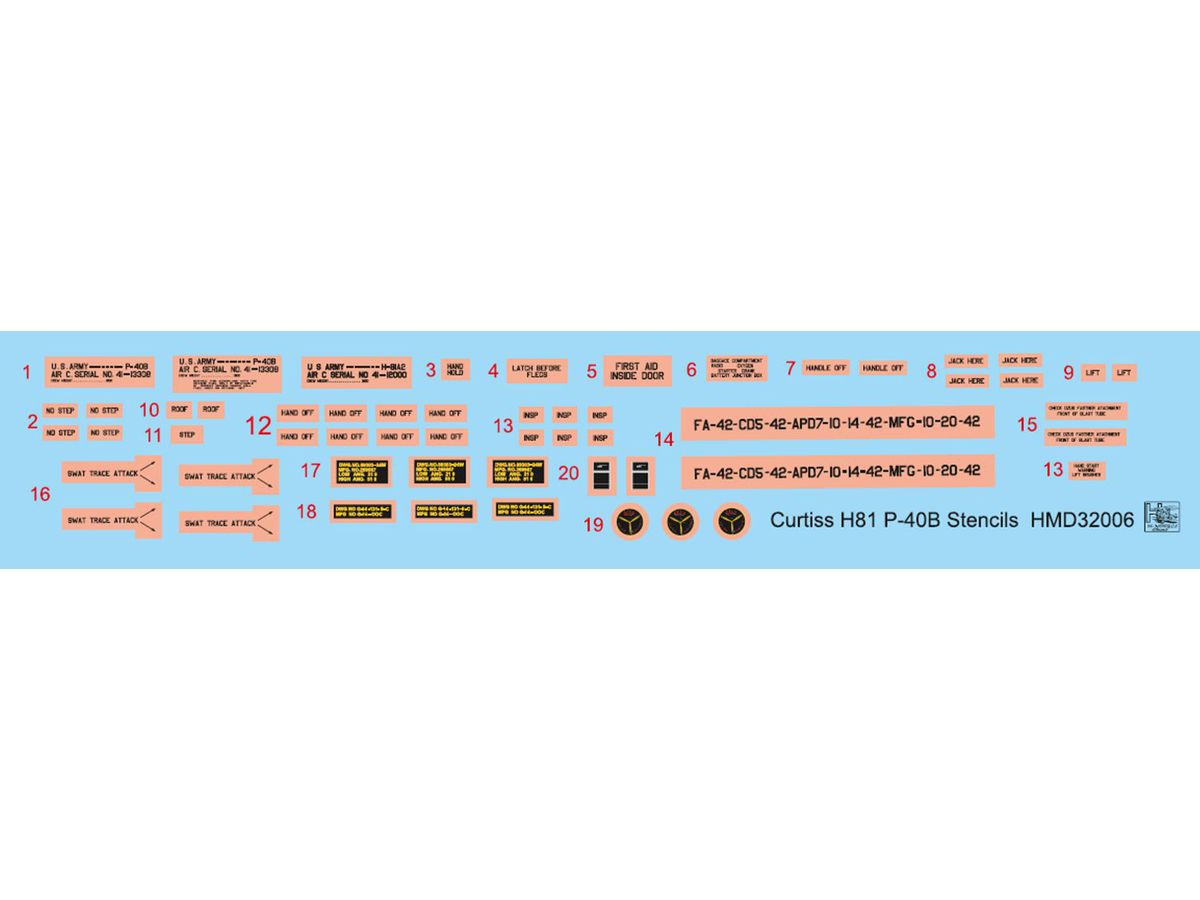 1/32 カーチス H-81/P-40B データーステンシル (2機分)