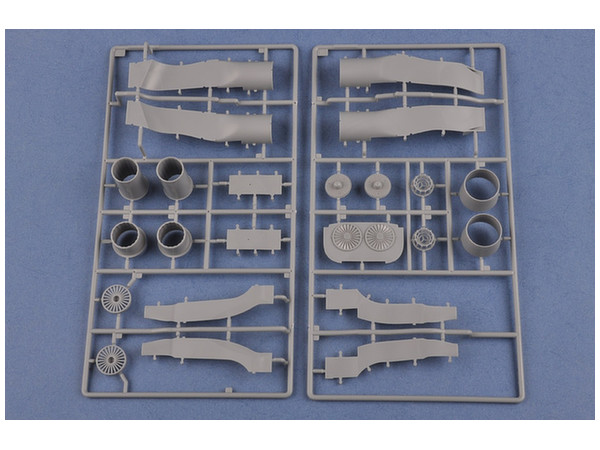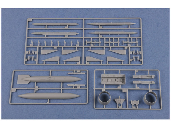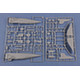 コクピットは精密にモデル化、金属製脚パーツ付き、合成ゴム製タイヤ付き、パーツ数340以上、エッチングパーツ付き、新金型。