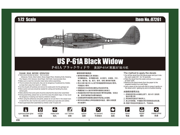 アメリカ陸軍航空軍が第2次大戦で運用した双発夜間戦闘機で、機体は全面黒色に塗装されており、愛称はブラックウィドウ(黒い未亡人)です。