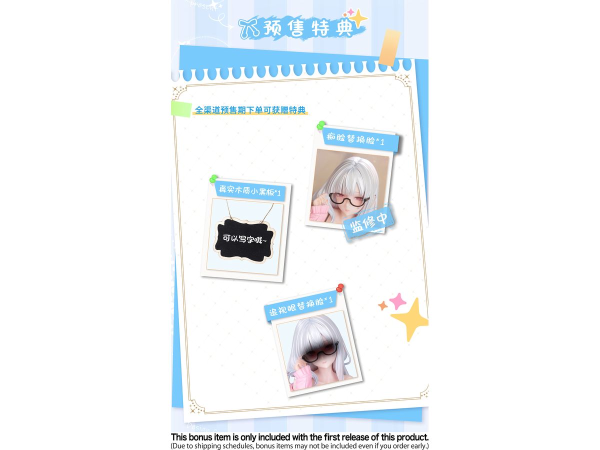 初回分にのみ、予約特典として差し替え表情パーツが2点とリアルに使える黒板も付属予定です!