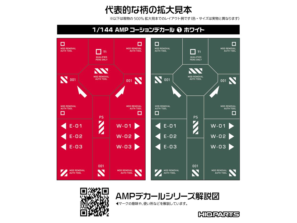 メカモデル向けの水転写式汎用コーションデカール「AMP」は、近年の細分化されたメカモデルのパーツ割に対応するため、デザインを刷新した新シリーズです。