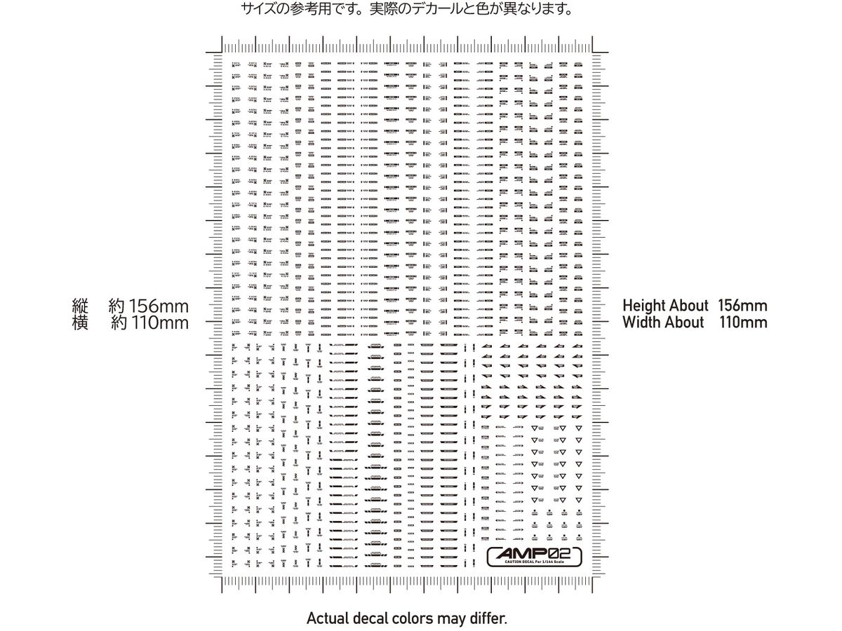 メカモデル向けの水転写式汎用コーションデカール「AMP」は、近年の細分化されたメカモデルのパーツ割に対応するため、デザインを刷新した新シリーズです。