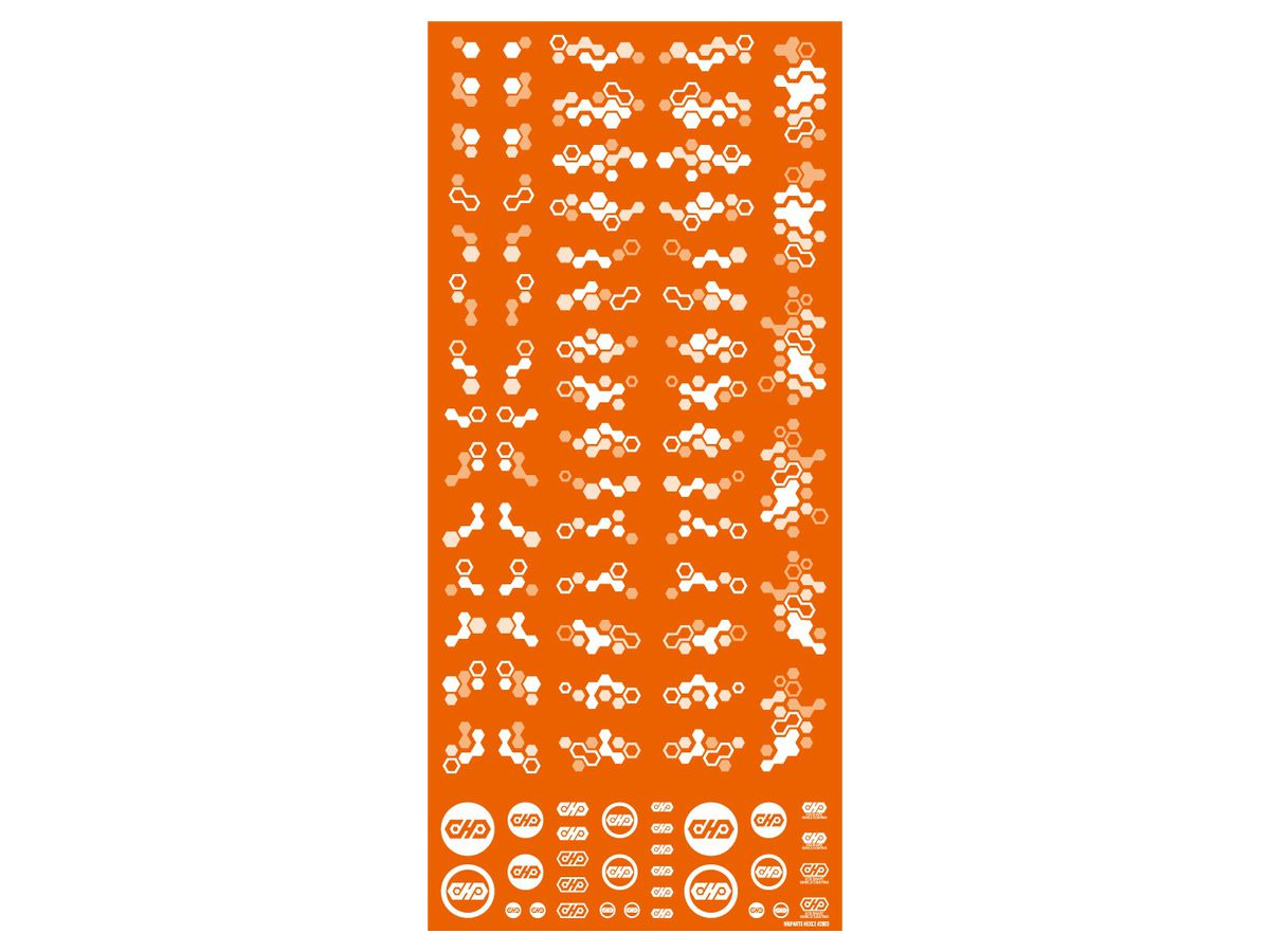 弊社には別売でヘックス模様を塗装するための補助ツール「ヘックス迷彩用マスキングシール(HEX-MSK)」がありますが、本製品は塗装ではなく水転写式デカールで迷彩模様を表現するものです。