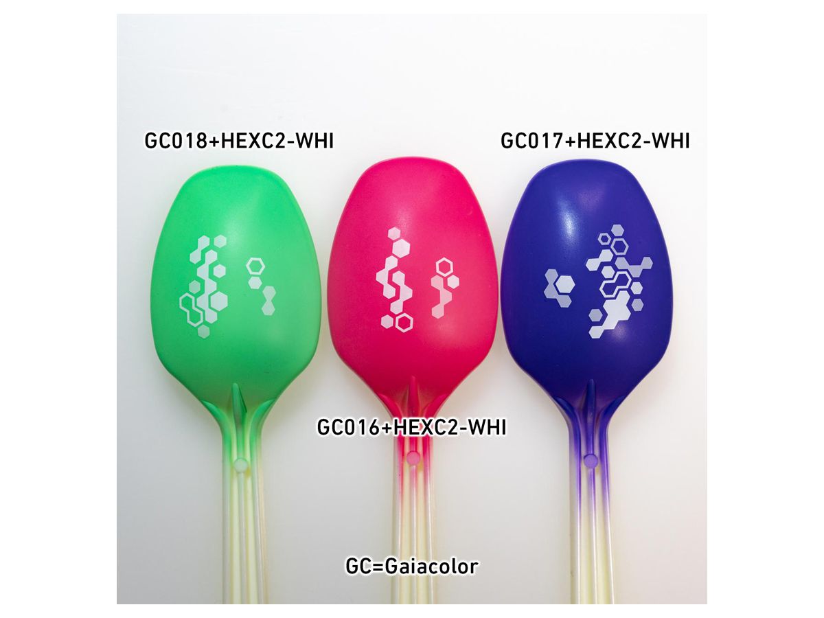 「ホワイト(HEXC2-WHI)」のみ、下地色を透過する3色のホワイトで印刷してあります。