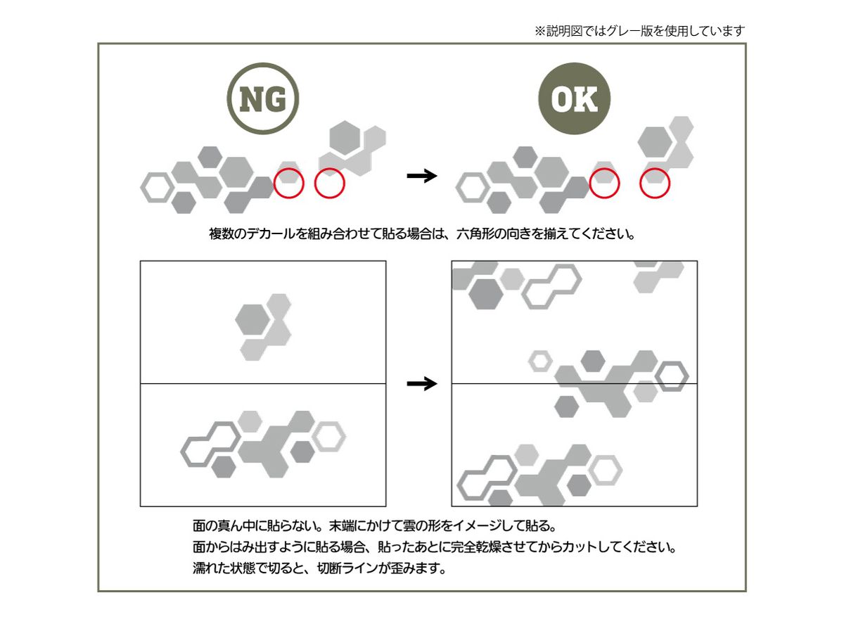 本製品はヘックス(六角)迷彩模様を印刷した水転写式デカールです。