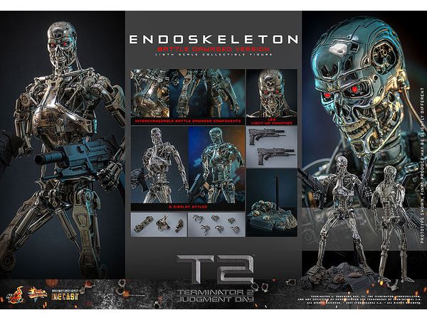 Movie Masterpiece Diecast - 1/6 Scale Fully Poseable Figure: Terminator 2: Judgment Day - Endoskeleton (Battle Damaged)