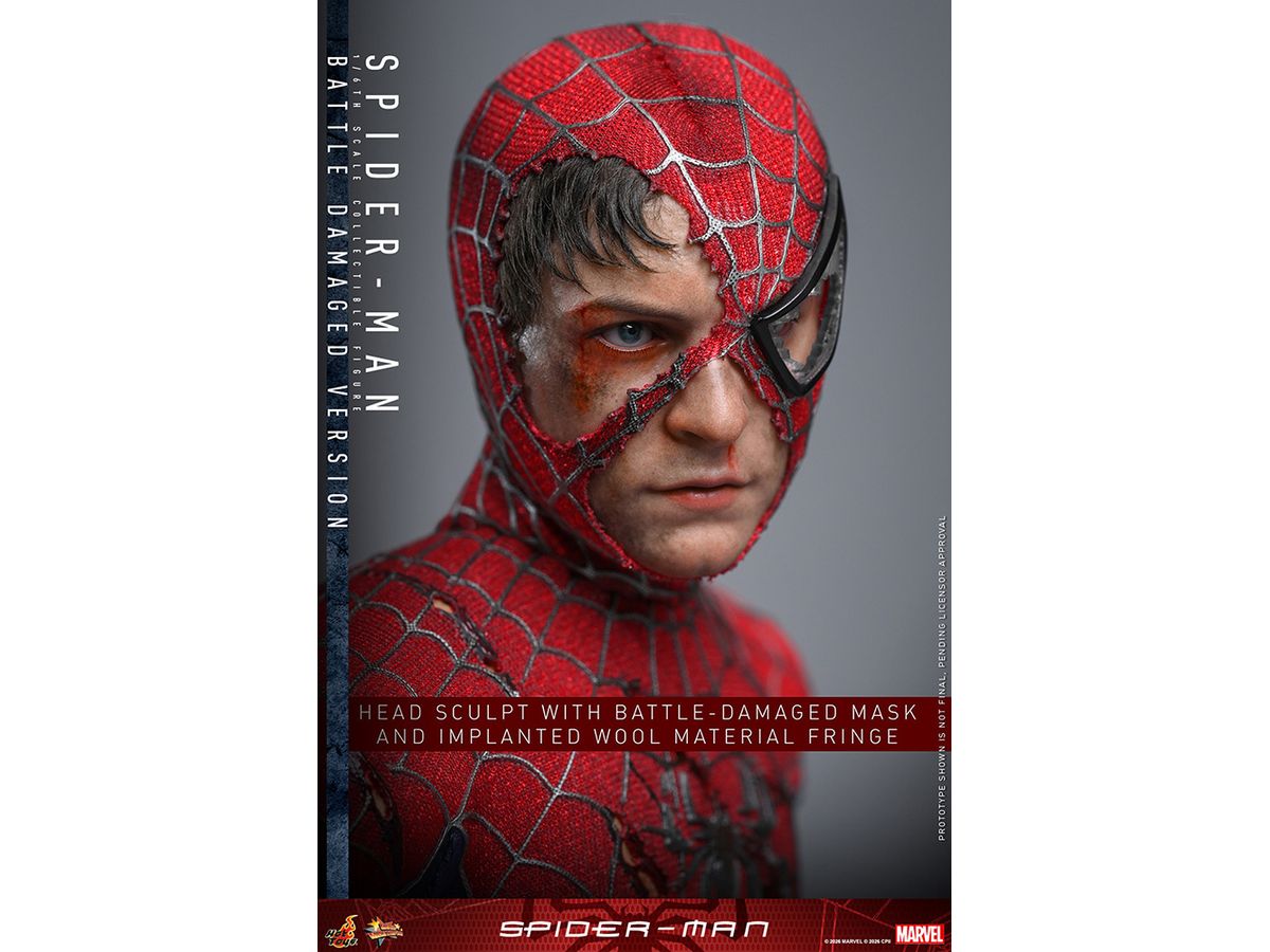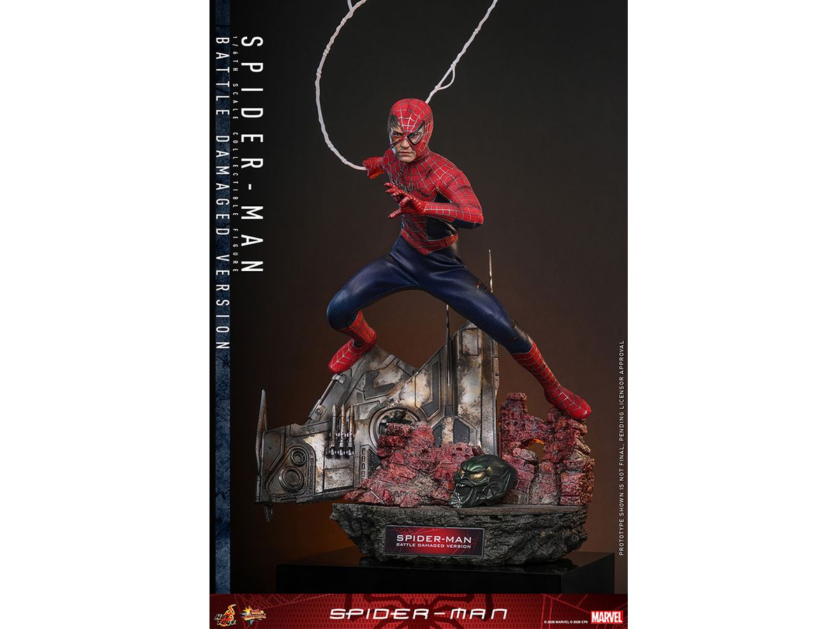 映画『スパイダーマン』に登場する、グリーン・ゴブリンとの最終決戦で傷を負ったスパイダーマンを、全高約30cm、30箇所以上が可動するハイエンドな1/6スケールのフィギュアとして立体化。
