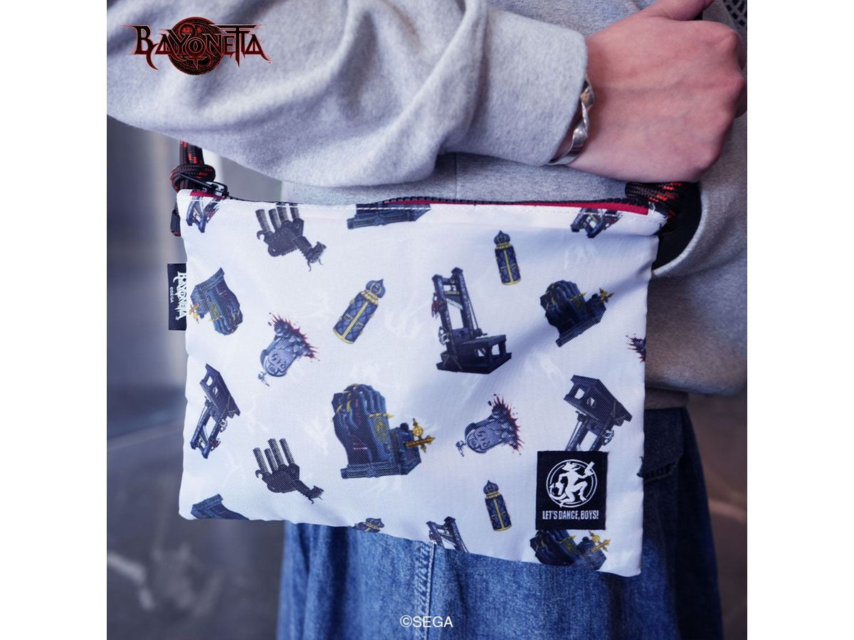 ベヨネッタがトーチャーアタックで使用する拷問器具が総柄になったトーチャーサコッシュをお届け!