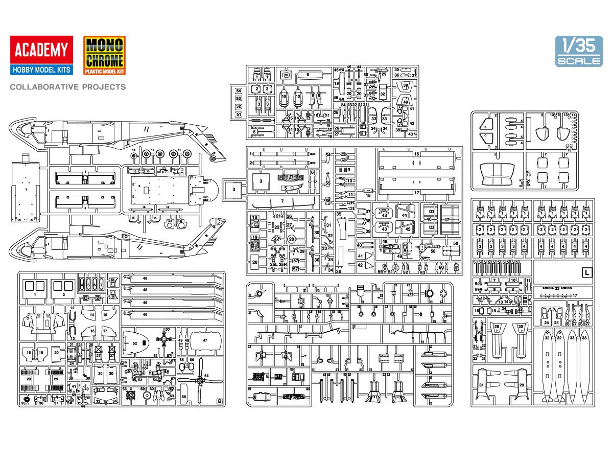 機体内部の兵員搭乗室とコックピット、赤外線暗視装置や増加燃料タンクを精密に再現しています。