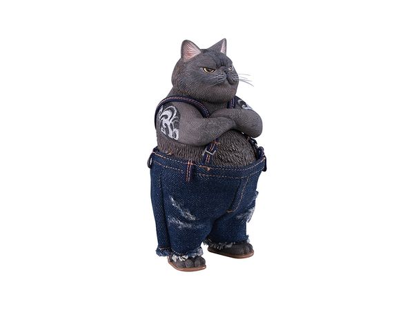 タフガイなポーズをとるネコ。とても遊び心あふれる一品です。