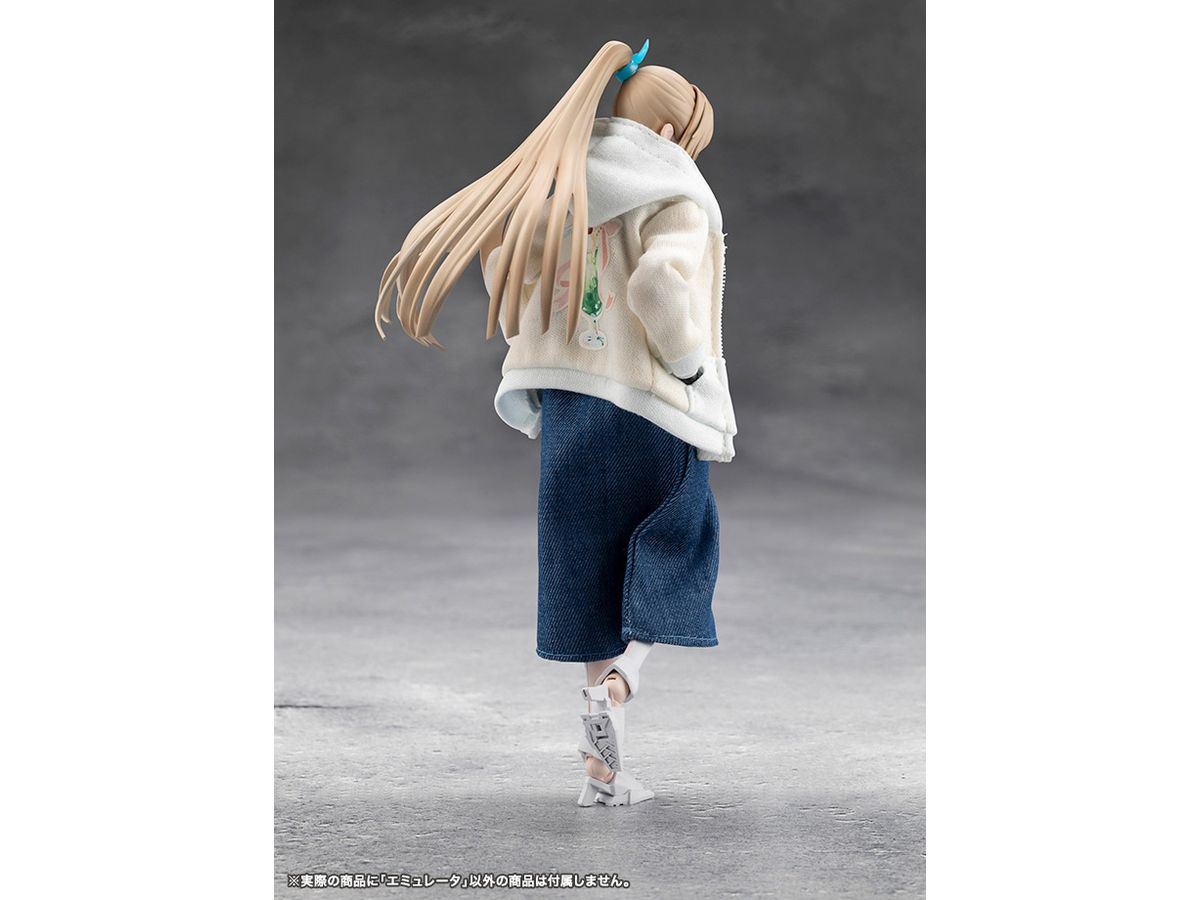 また、前髪パーツは女性型アナザーのバイザーパーツや一部の創彩少女庭園キャラの前髪パーツと互換性があり生身とメカを組み合わせたカスタマイズが可能。