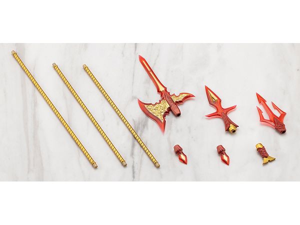 バーチュアスタイル03 ポールウェポンセットの仕様はそのままに、穂先をクリアーレッド、柄はゴールド、石突をメタリックレッド等で成型した魔法武器をイメージしたアイテムです。