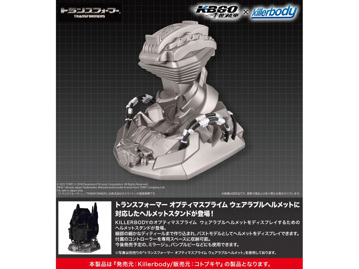 KILLERBODYのオプティマスプライム ウェアラブルヘルメットをディスプレイするためのヘルメットスタンドが登場。
