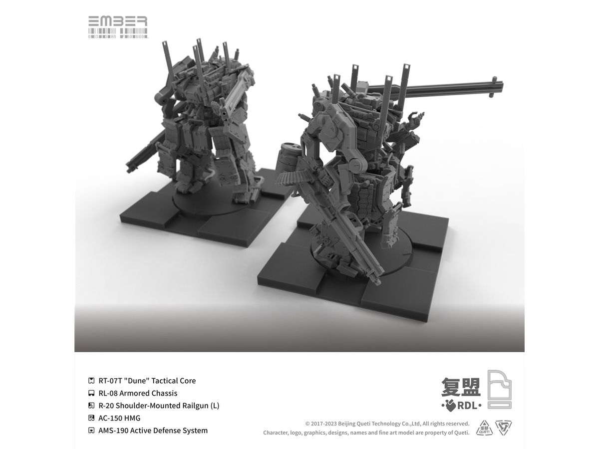 全自動火器ステーションから重機関砲まで、多彩な武装に対応した換装式モジュールが多数含まれており、戦術的優位を生み出す各種バックパックやコアユニットも搭載可能。