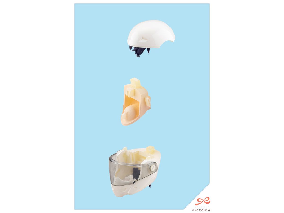 ヘルメット内部に創彩少女庭園やメガロマリアのフェイスパーツを取り付けて遊ぶことができ、ヘルメット上部のカバーと基部を引き抜くことでフェイスパーツの交換が可能になります。
