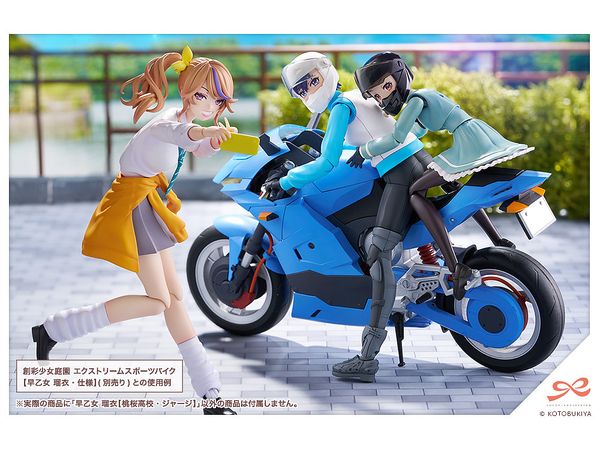 「前傾姿勢用の上半身」「フルフェイスヘルメット」と組み合わせることで全身が揃う為、制服ボディとライディングボディの2種類を同時にお楽しみいただけます。