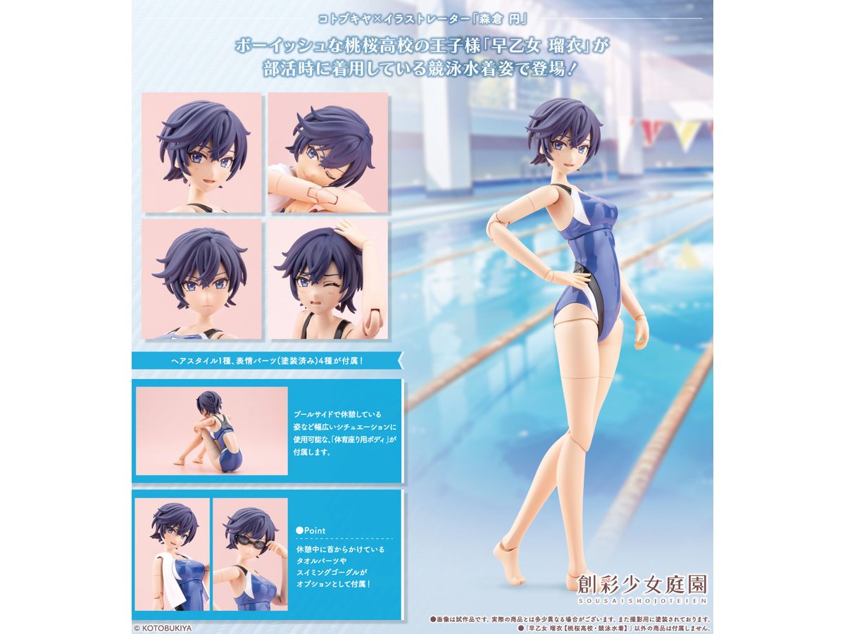 ボーイッシュな桃桜高校の王子様「早乙女 瑠衣」が部活時に着用している競泳水着姿で登場!