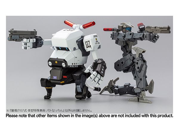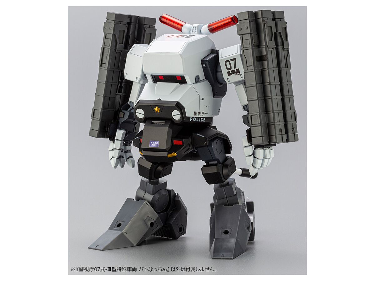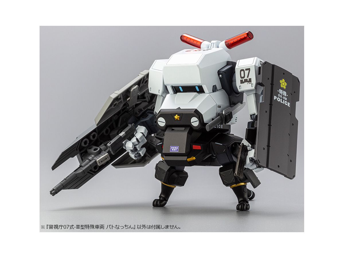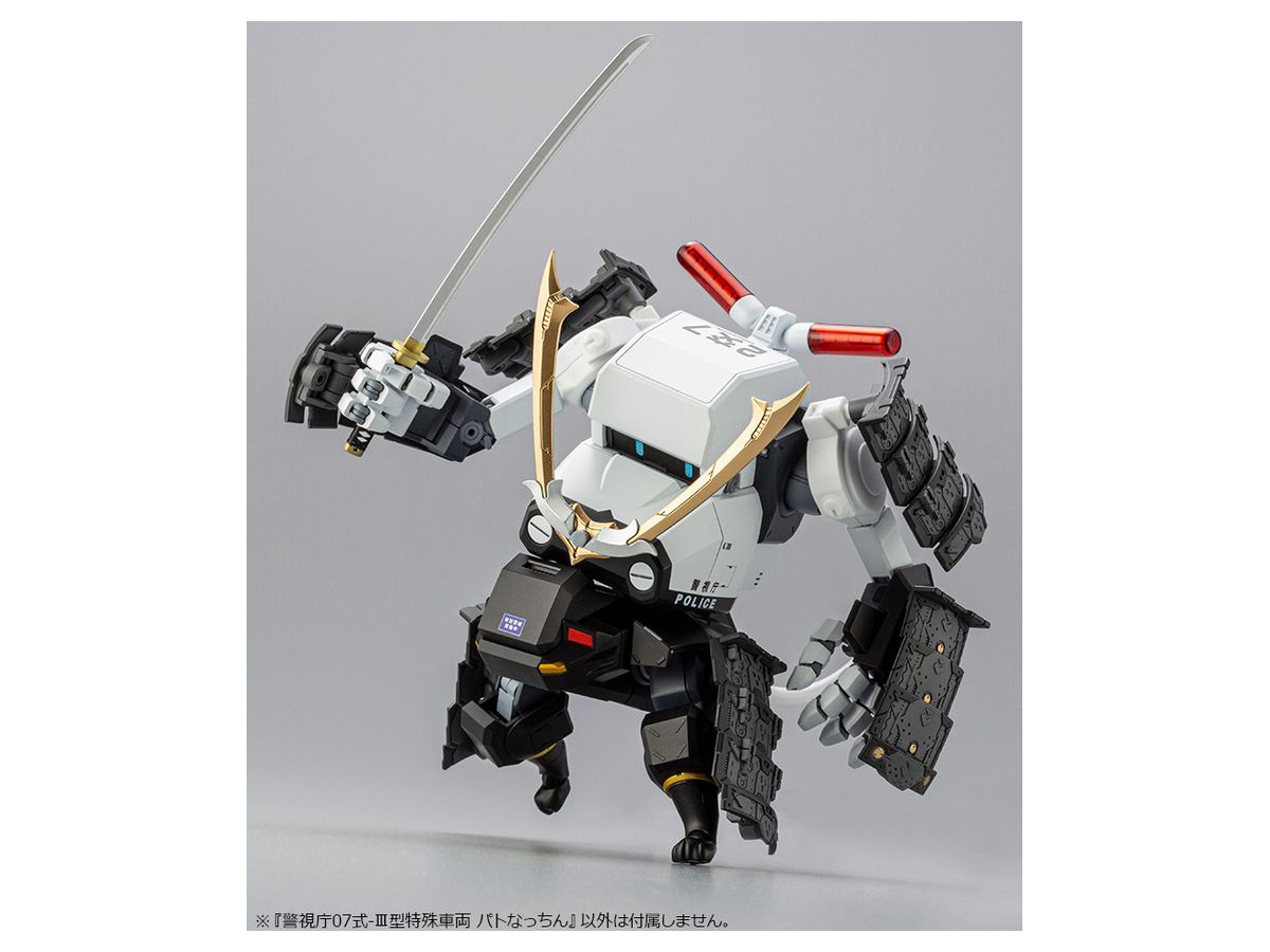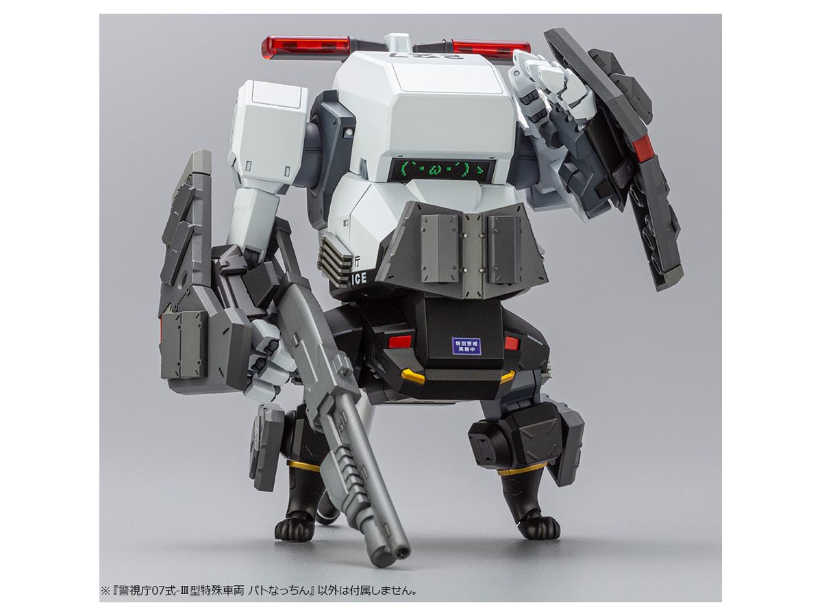 ・オリジナルデザイナー・moiさんが新たにデザインした警察仕様の「なっちん」を、「パトランプ」「コックピットヘッド」「ショルダーアーマー」他、多数の新規金型パーツにより再現。