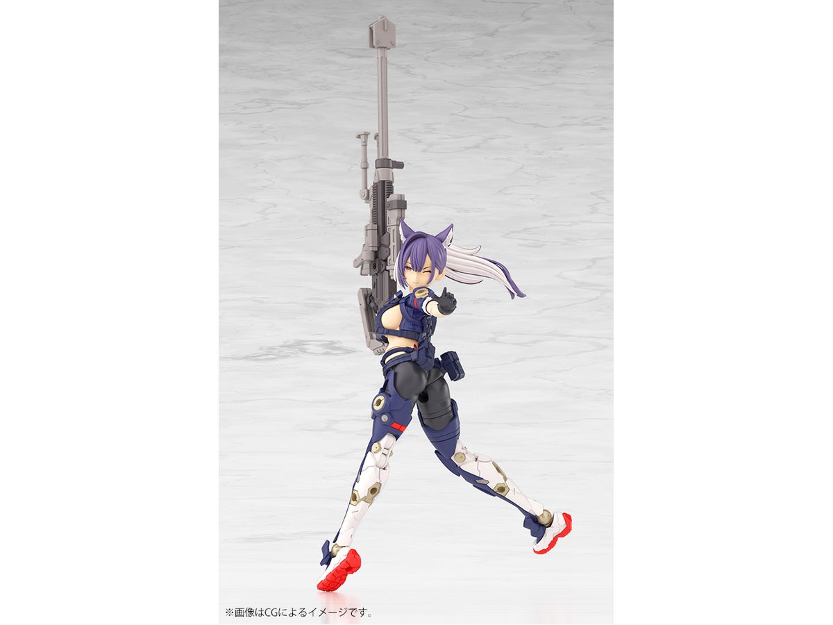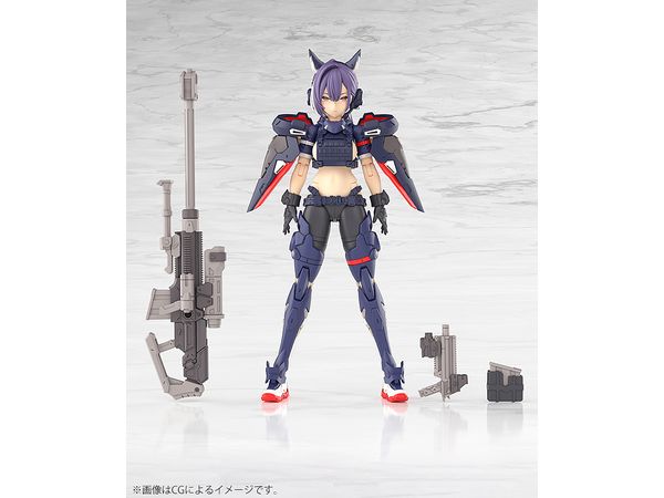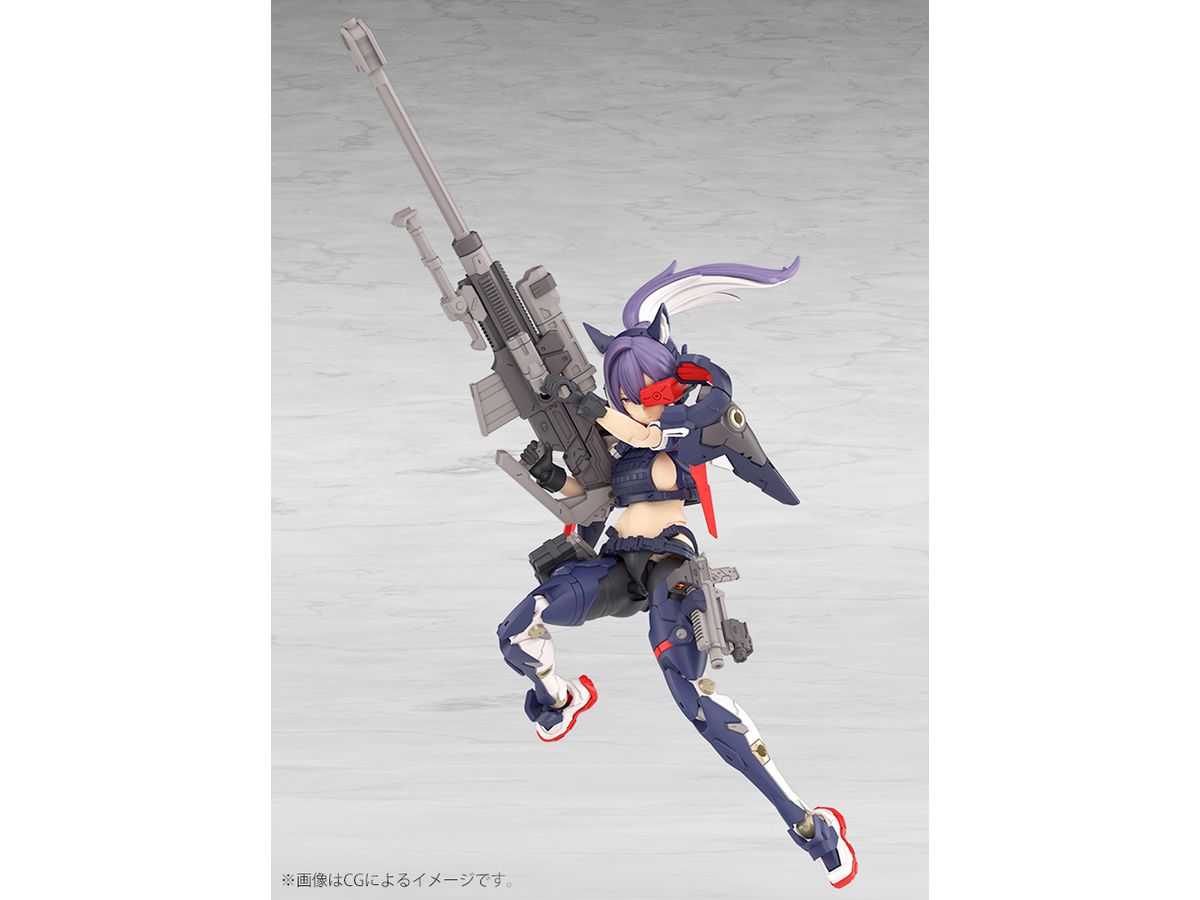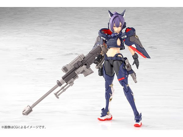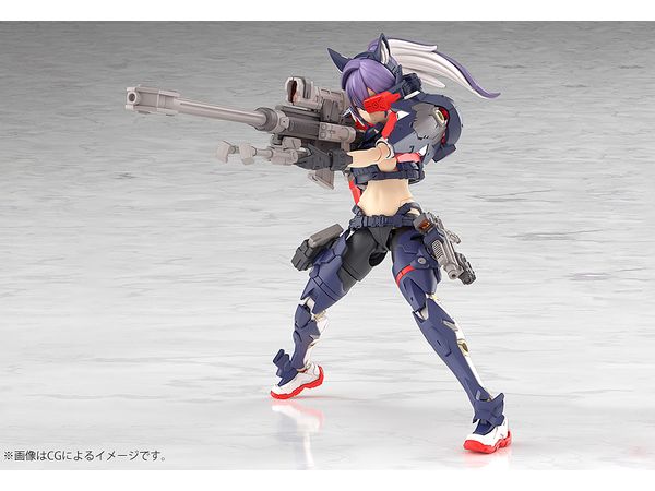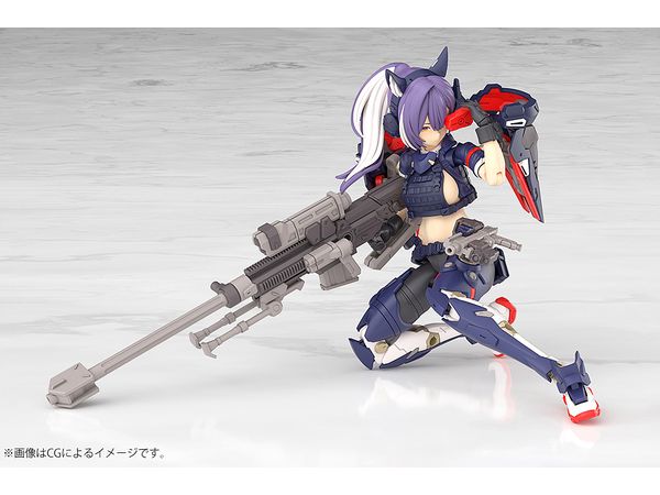 2番機「スコル・シャープシューター」は主兵装にスナイパーライフルを装備した遠距離狙撃で力を発揮するメガミとしてデザインされました。