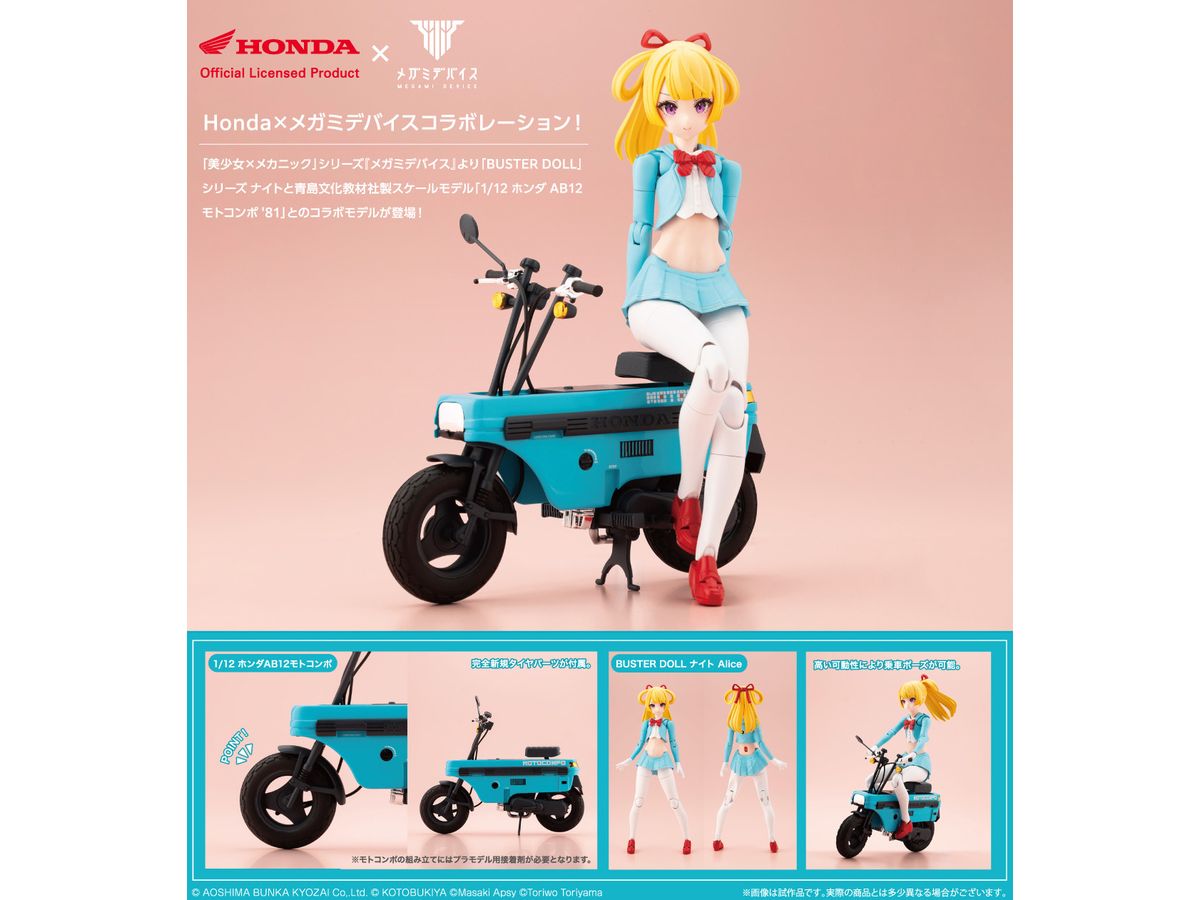 「美少女×メカニック」シリーズ『メガミデバイス』より「BUSTER DOLL」シリーズ ナイトと青島文化教材社製スケールモデル「1/12 ホンダ AB12 モトコンポ ‘81」とのコラボモデルが登場!