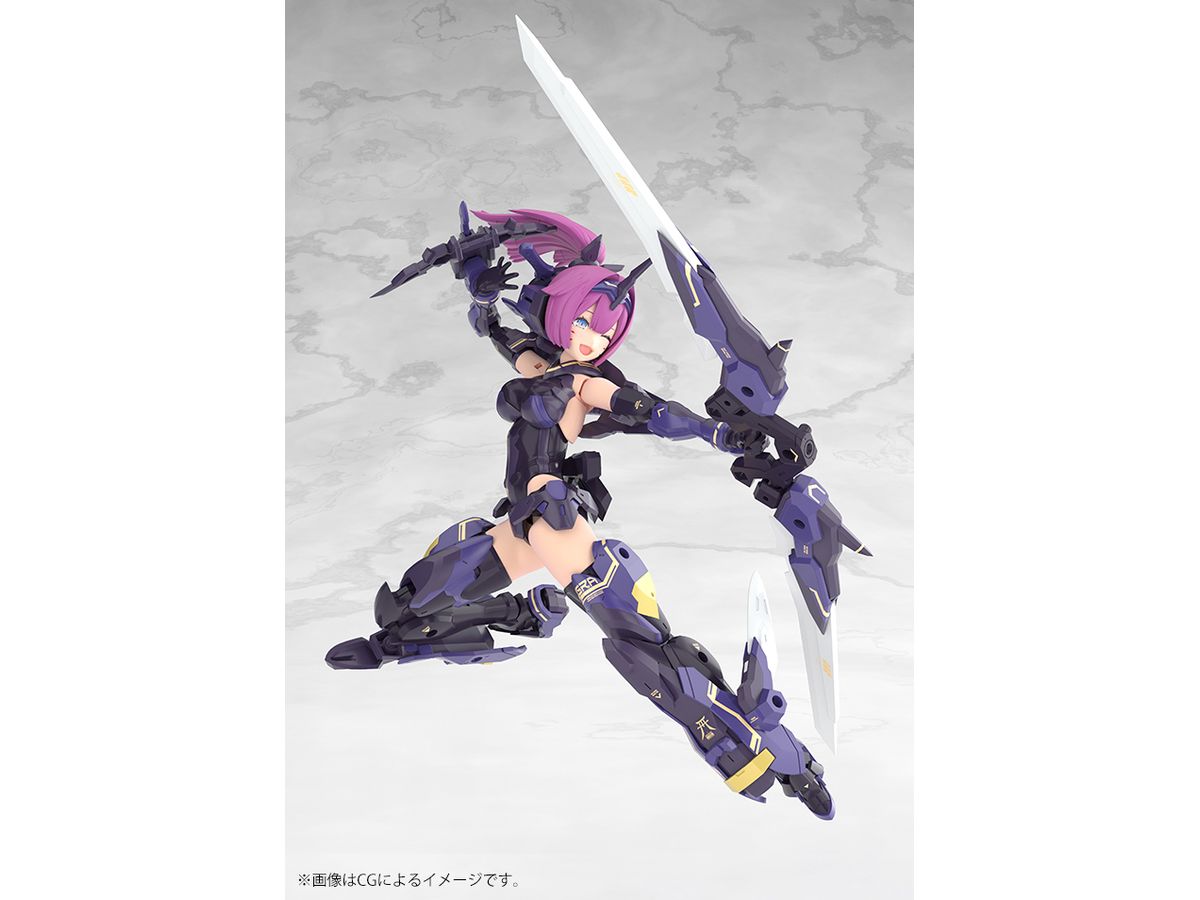 プロポーションを大きく変更し、皇巫シリーズと同等の成長を遂げたシルエットの「朱羅 弓兵 絆(きずな)」に通常の「朱羅 弓兵」の武装を追加した武装バージョンになります。