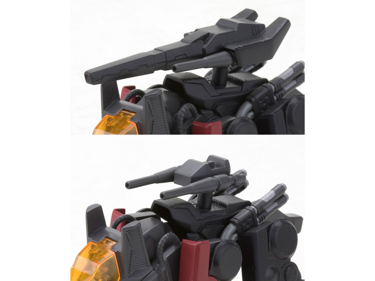 アニメ設定通り「ロングレンジライフル」を装備した後期版の他に、「50mm対ゾイド2連ビーム砲座」のみ装備した初期版も再現可能です。