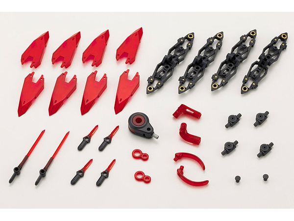 シャープなシルエットが美しい「翼形態」、ボディを覆う盾としての「防御形態」等、ギミックを使い分ける事により様々なパターンが楽しめ、お手持ちのキットを強く美しくカスタマイズする事が出来ます。