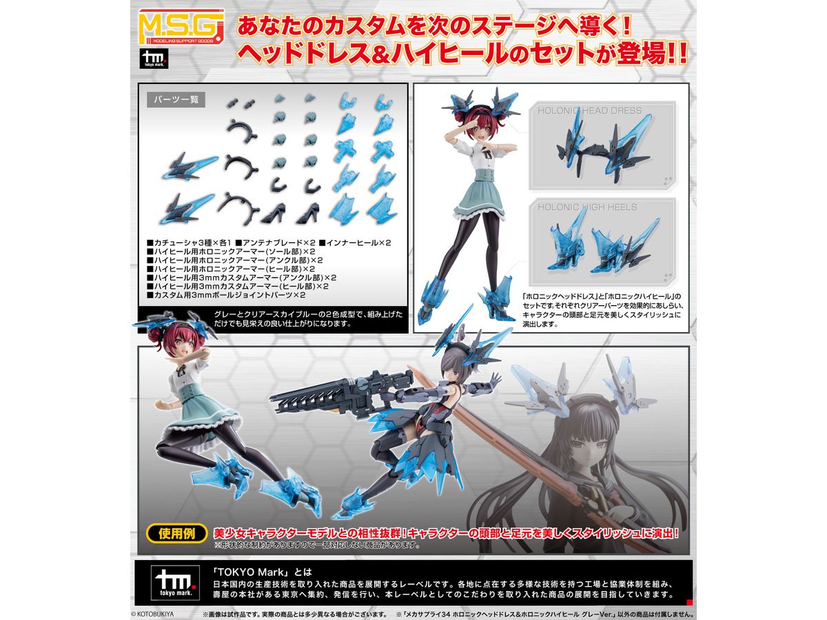 ■美少女キャラクターモデル向けの改造パーツ、「ホロニックヘッドドレス」と「ホロニックハイヒール」のセットです。