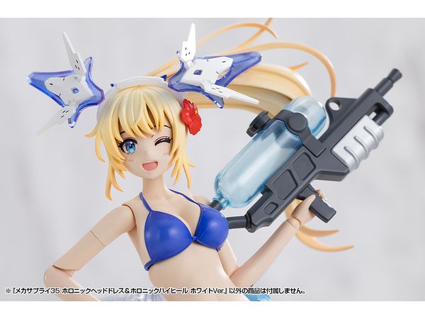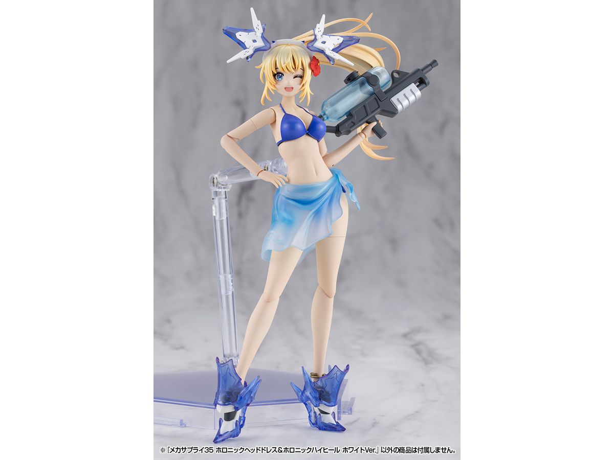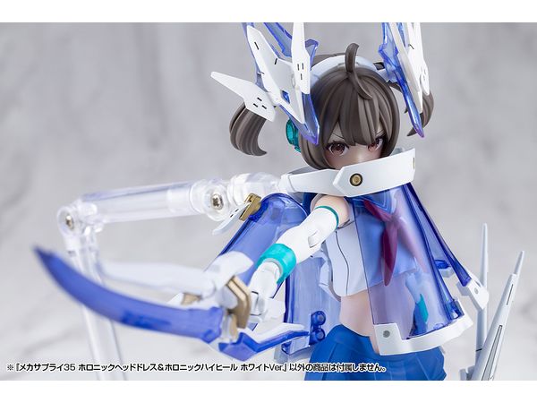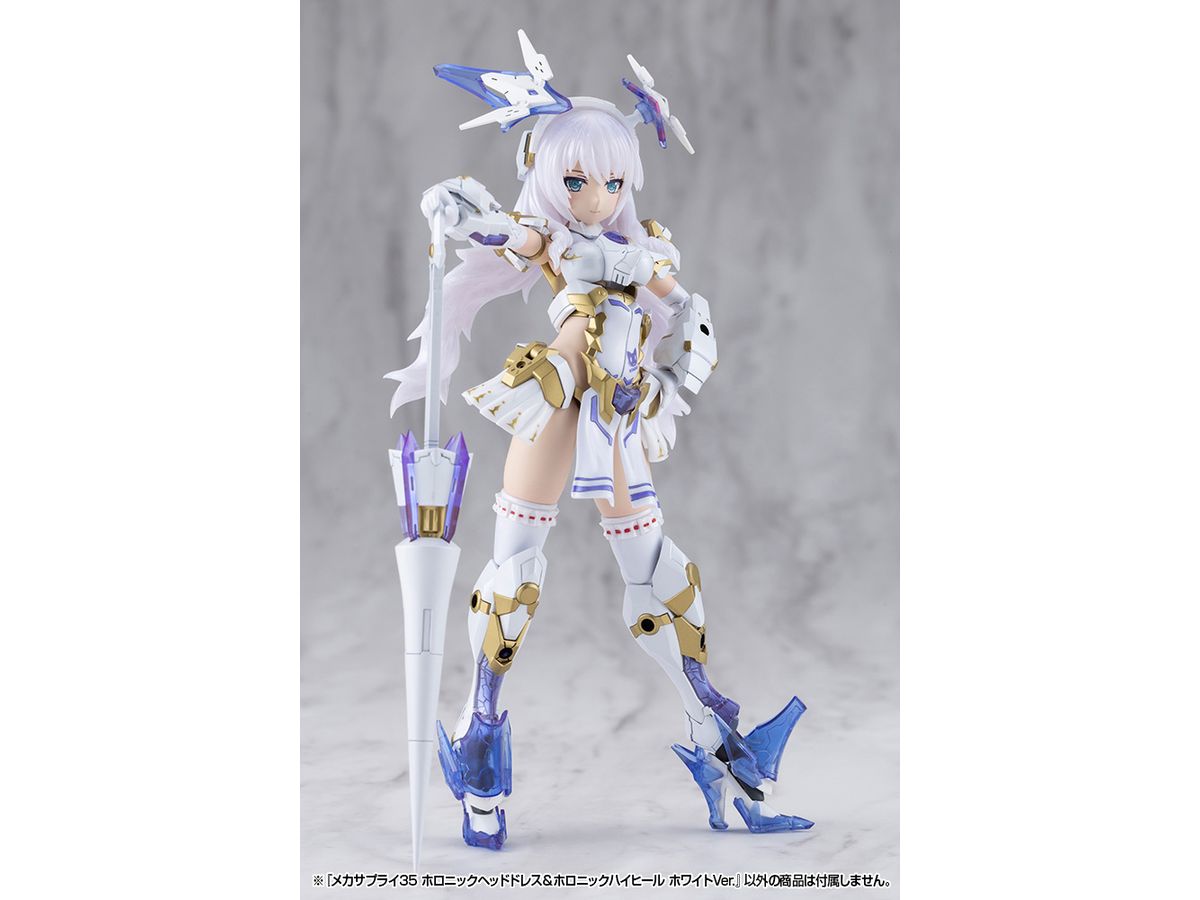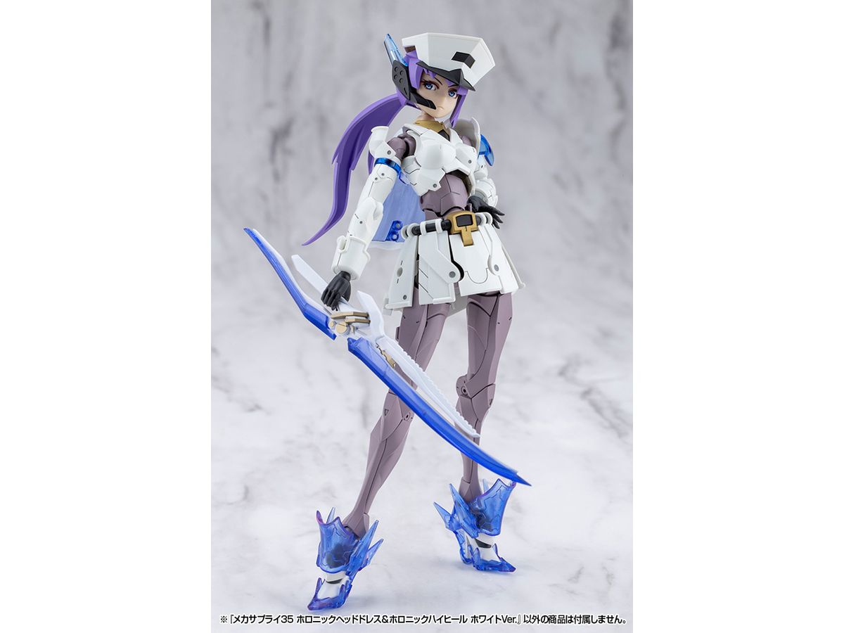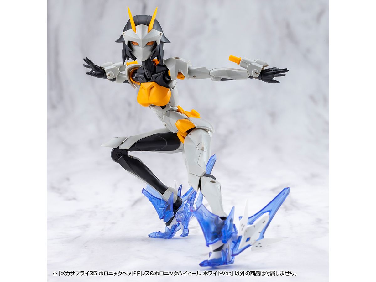 ■美少女キャラクターモデル向けの改造パーツ、「ホロニックヘッドドレス」と「ホロニックハイヒール」のセットです。それぞれクリアーパーツを効果的にあしらい、キャラクターの頭部と足元を美しくスタイリッシュに演出します。