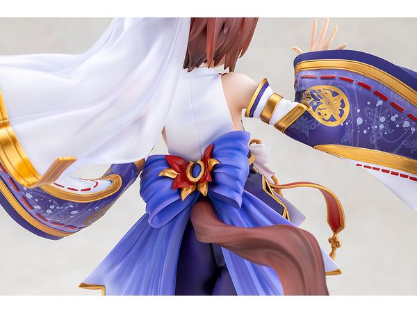 紫雲のごとく幻想的な彩りをまとったトウカイテイオーの和装姿を、繊細な造形と塗装で表現しました。