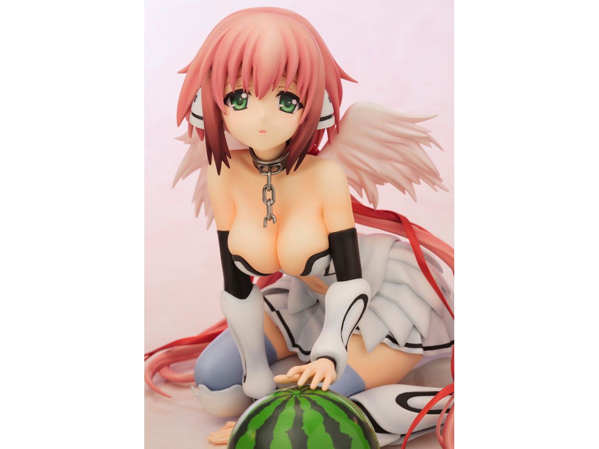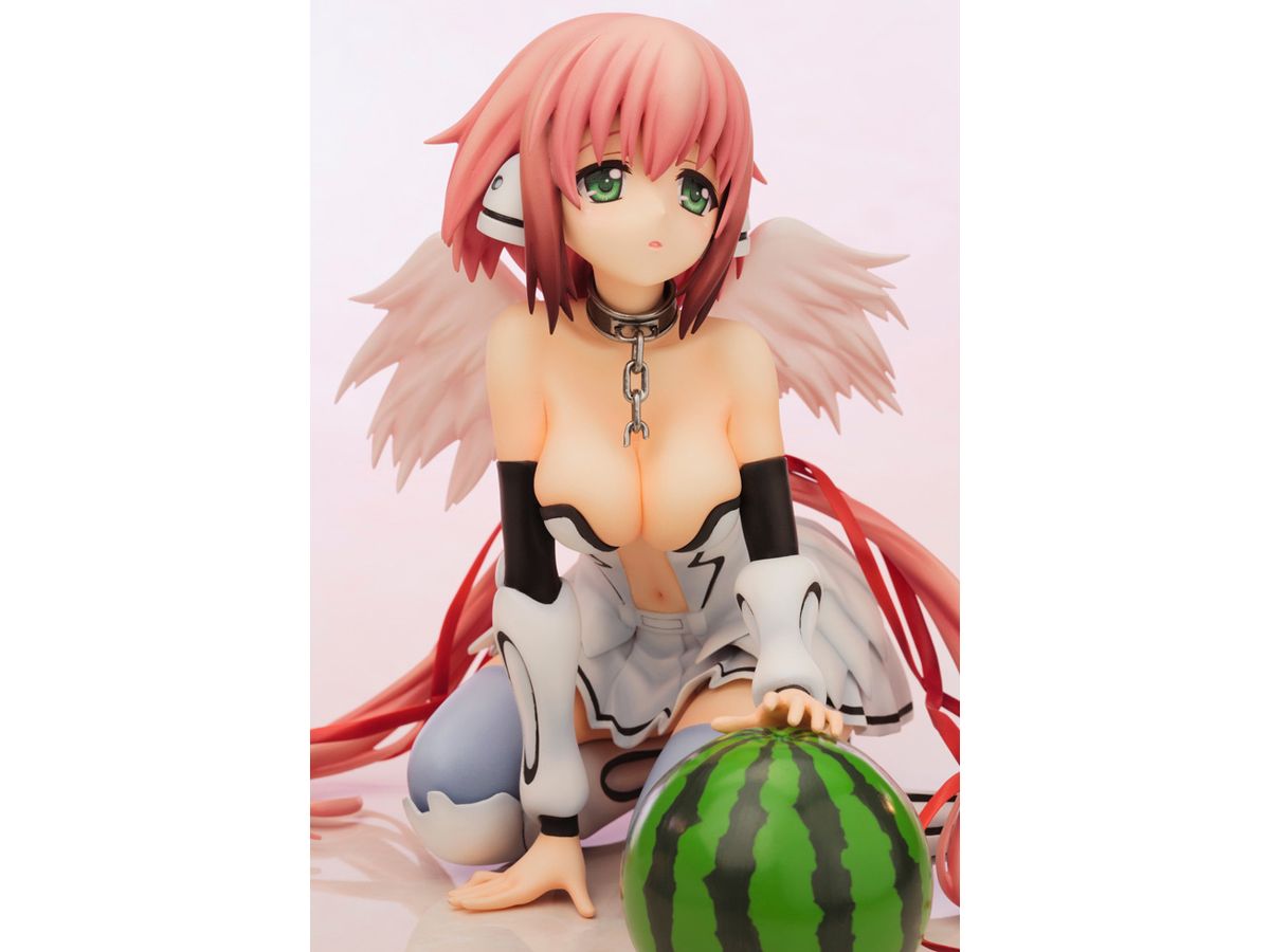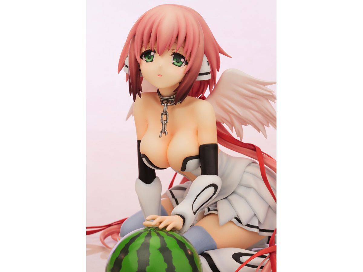 何かを伝えたいかのように僅かに開かられた口元、無垢な瞳でこちらを見つめながらそっと手を差し出す、見る者すべてを魅了する天使のようなたたずまいから、付属のスイカを手の下に置くことにより、スイカをなでなでしているホンワカしたワンシーンにも早変わり(?)の、いかにもイカロスらしい姿でまとめました。