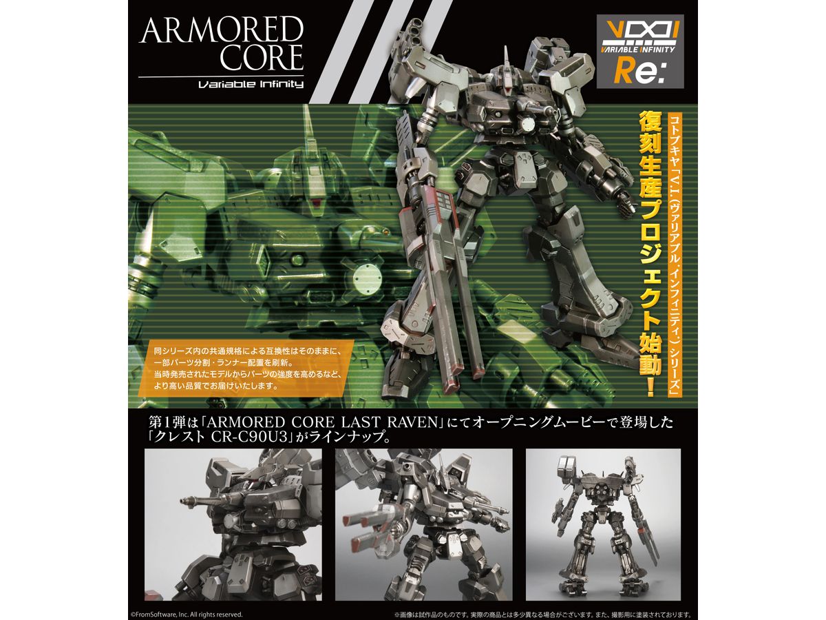 第1弾は「ARMORED CORE LAST RAVEN」にてオープニングムービーで登場した「クレスト CR-C90U3」がラインナップ。