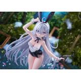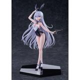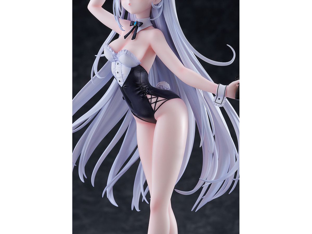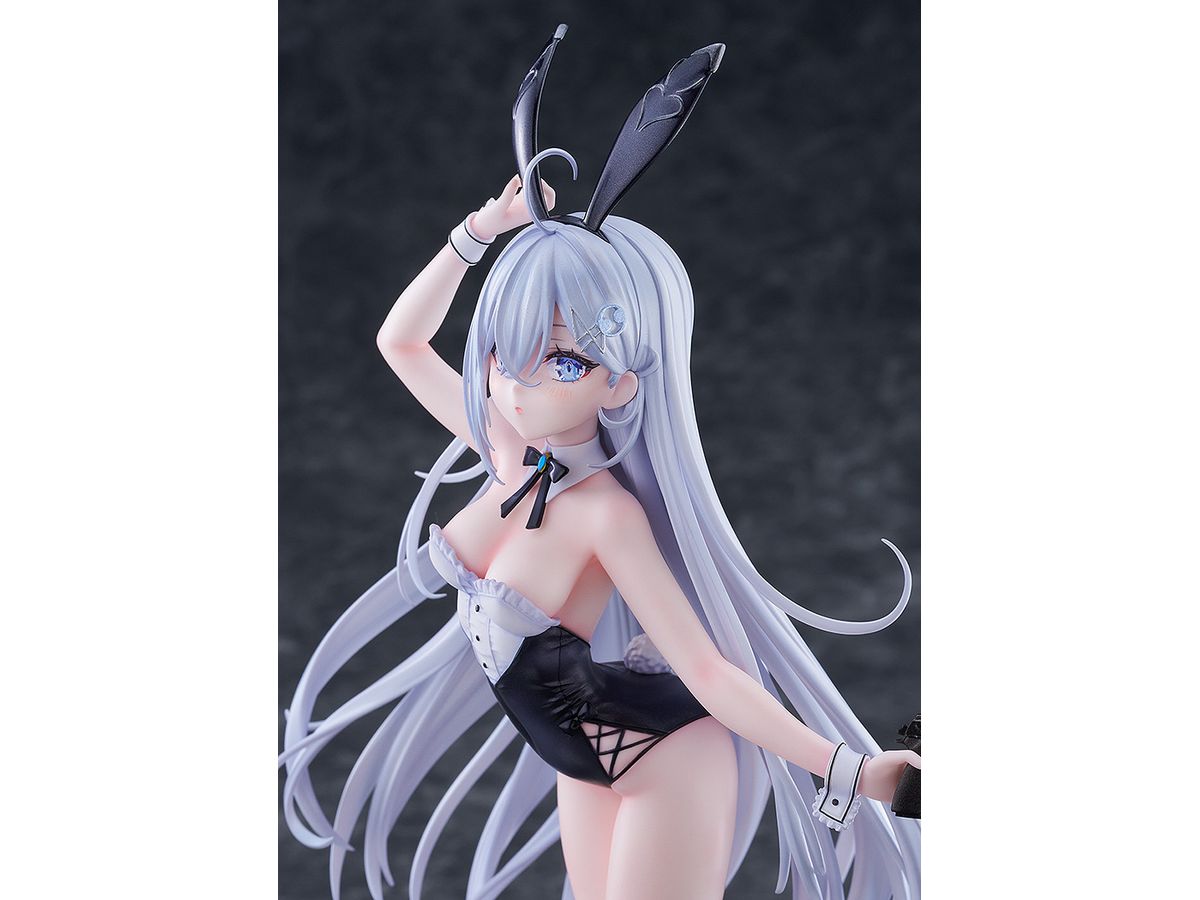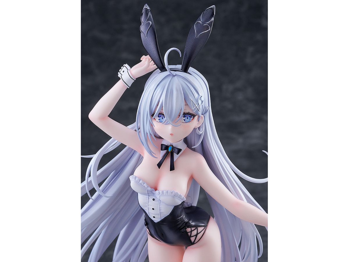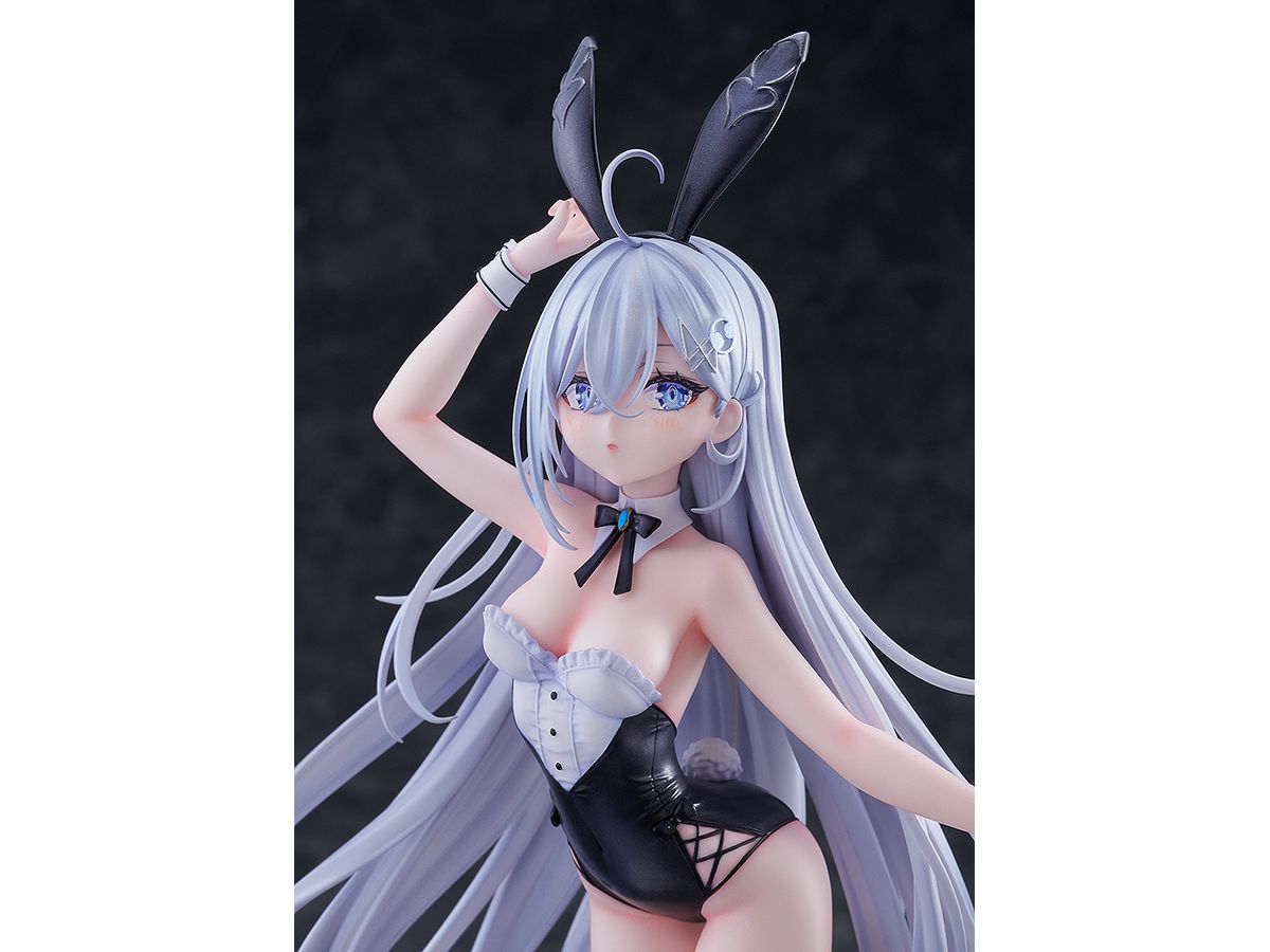 このフィギュアのために描き下ろされたイラストをもとに、バニー耳を気にしてそっとつまみ、ほんのりと頬を染めながらこちらを見つめる青い瞳や