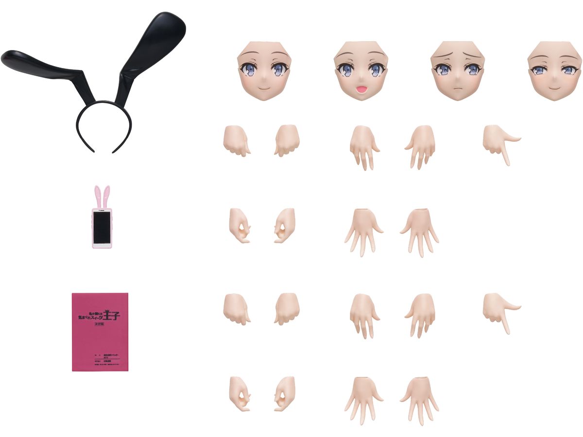 ・オプションパーツとして「スマホ」「バニーカチューシャ(手持ち用)」「台本」「手首パーツ5種」「夏制服用手首パーツ5種」 「ディスプレイ用台座」が付属。