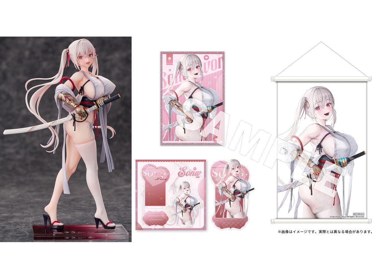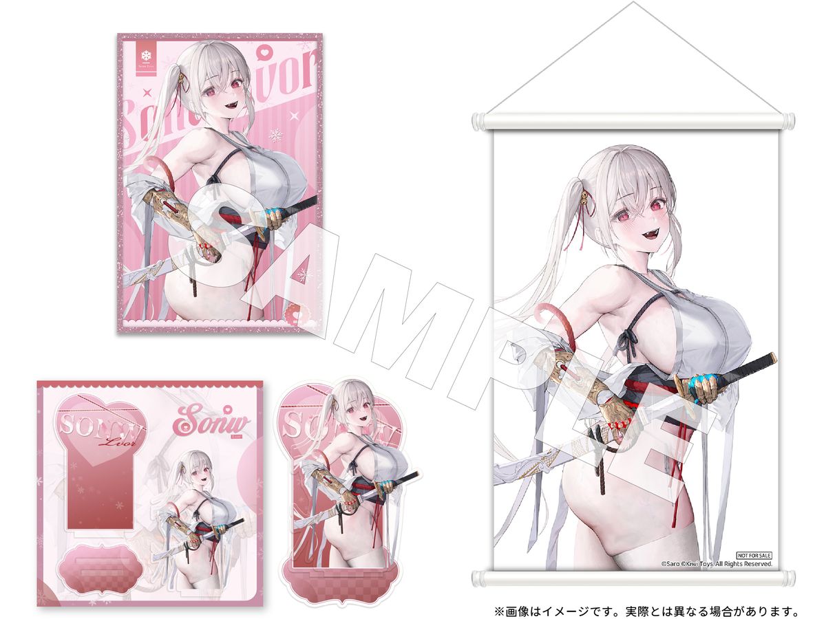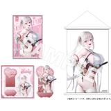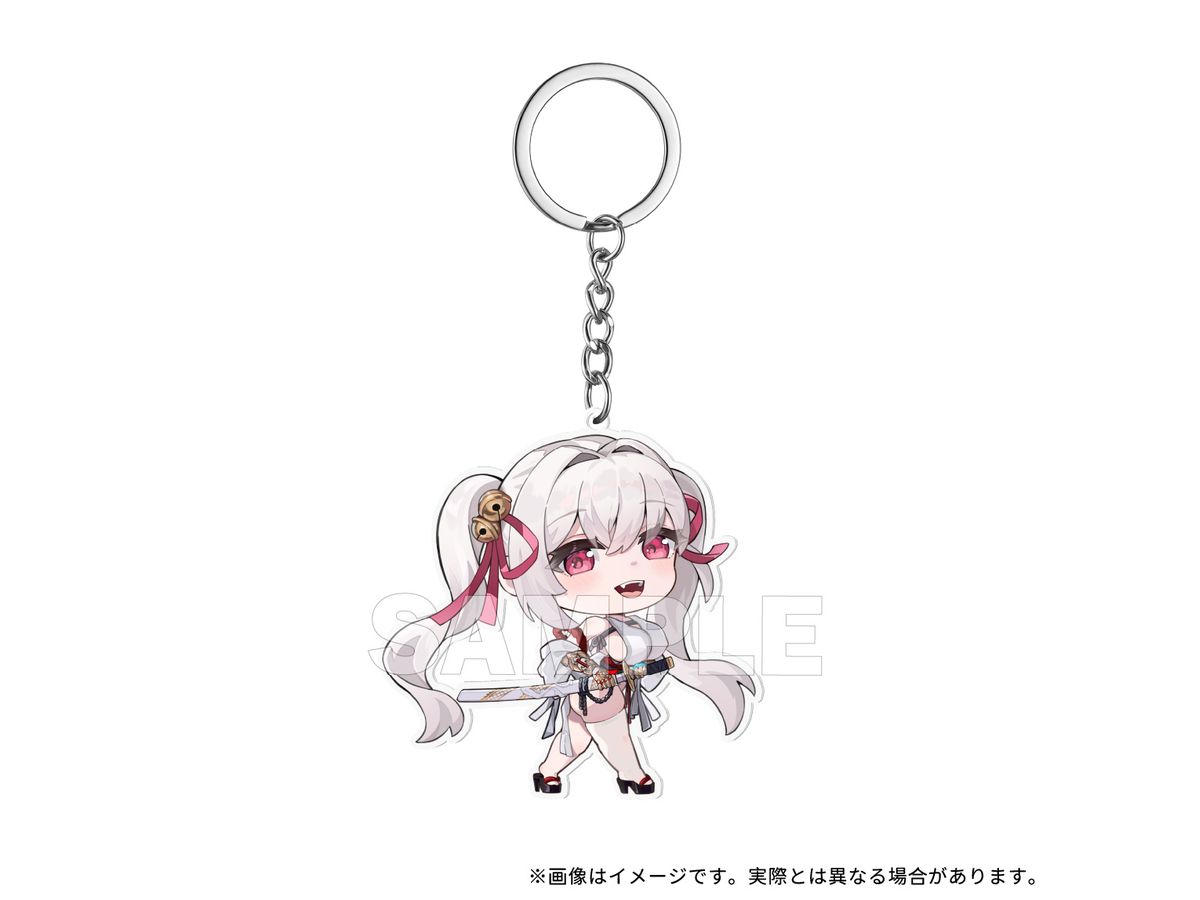 ミニキャラアクリルキーホルダー、色紙(14×21cm)、原画タペストリー(30×48cm)、アクリルフィギュア(15×15cm)