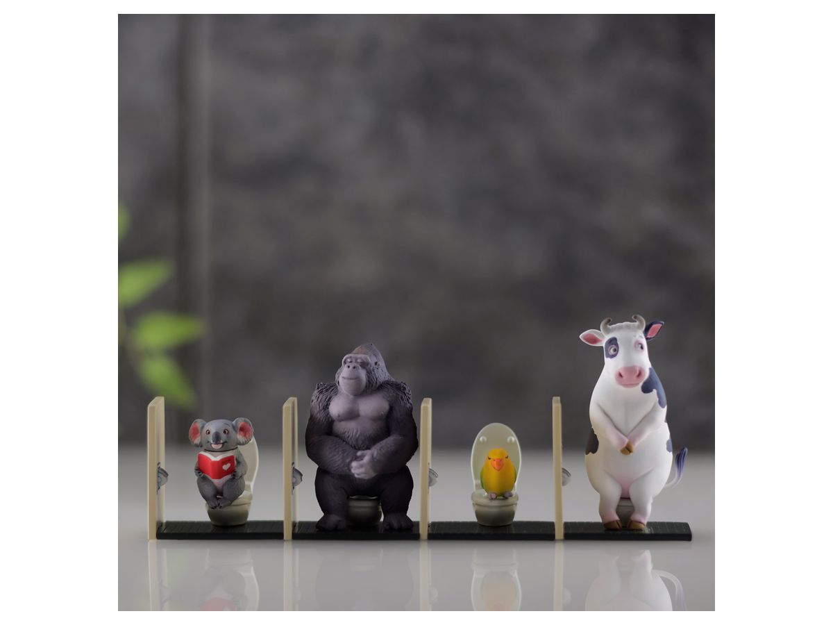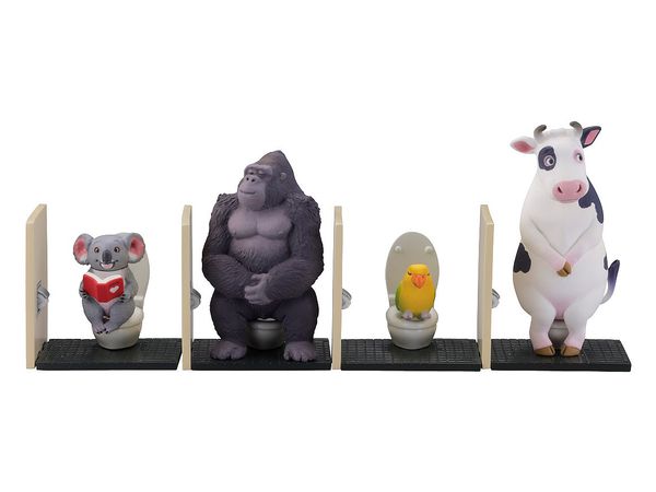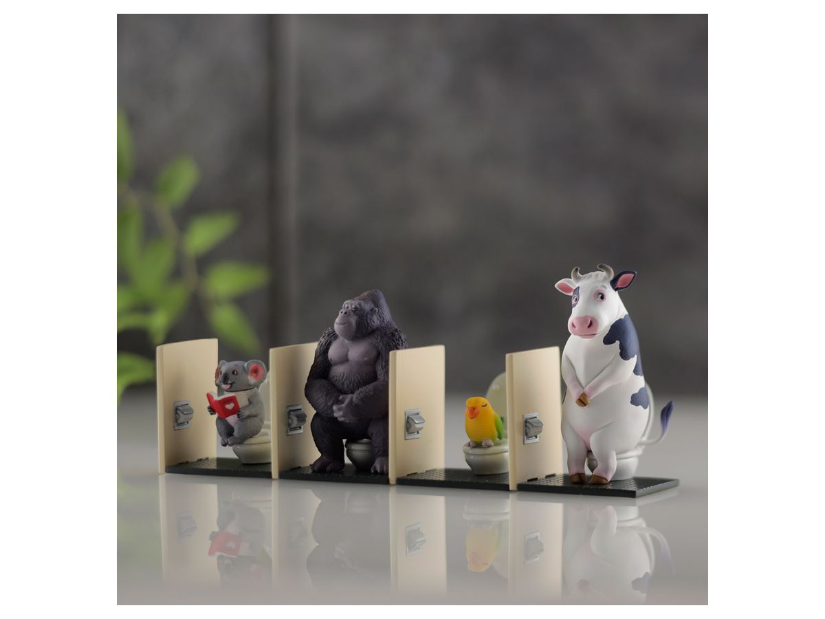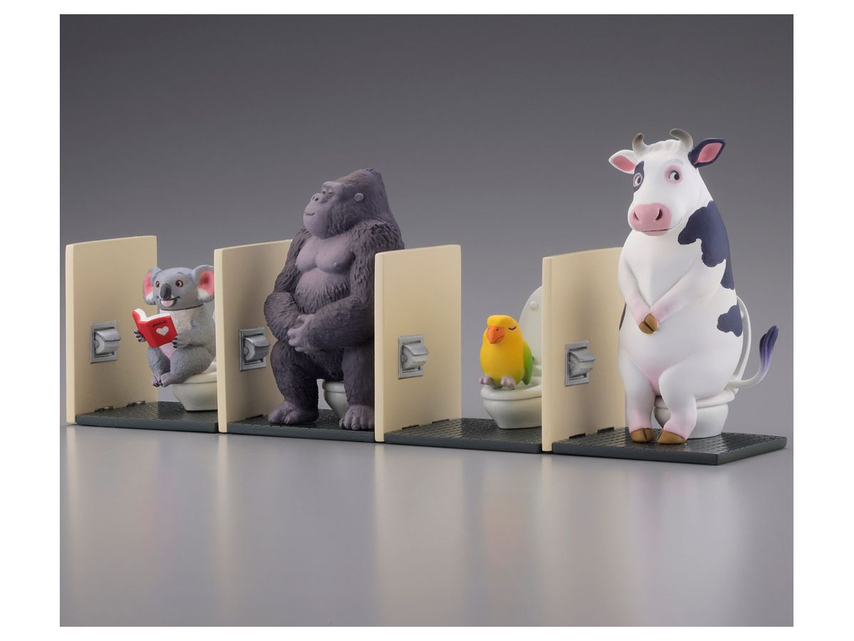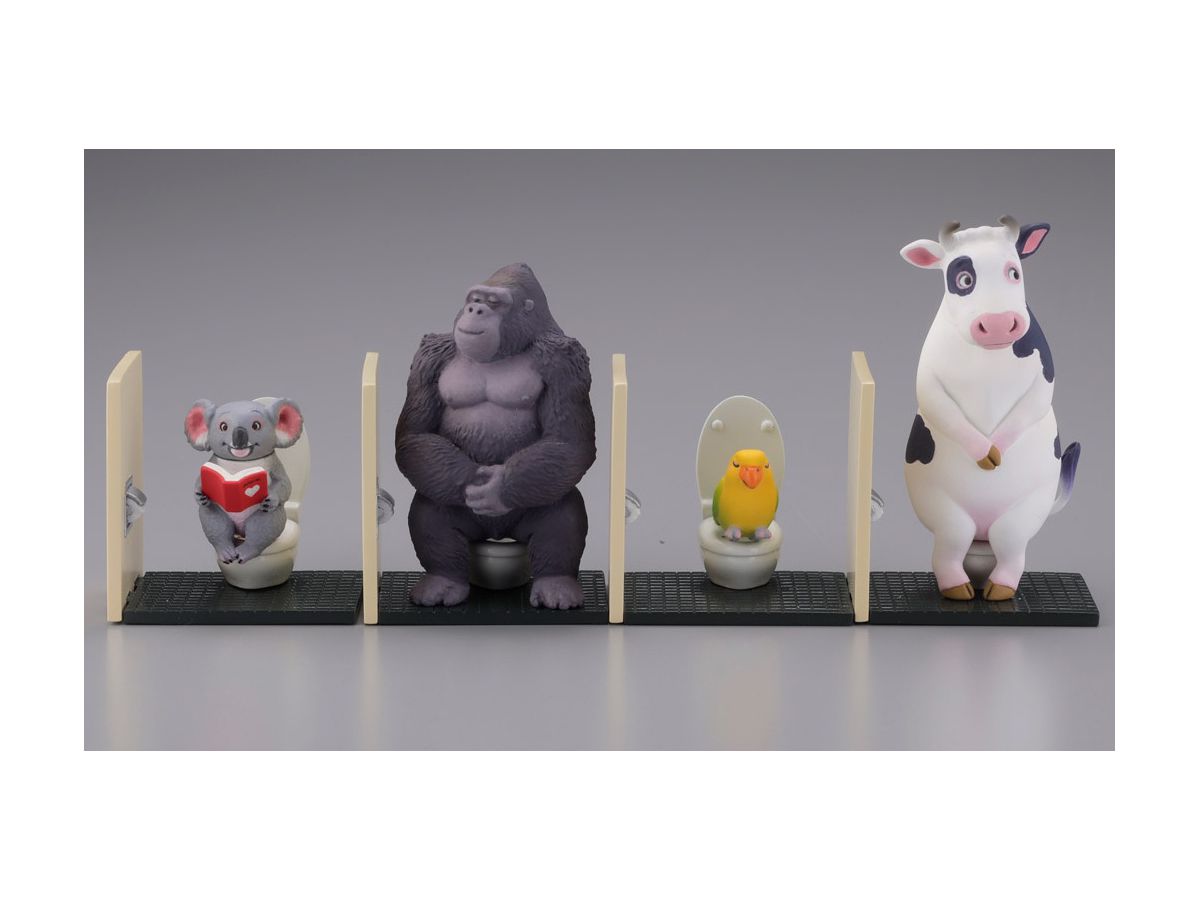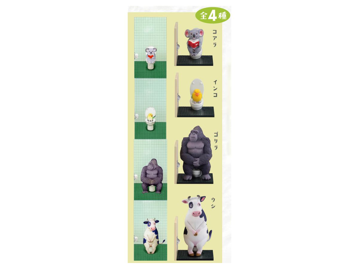 洋式トイレで用をたすウシ、ゴリラ、コアラ、インコの4種類の動物たちが新たに仲間入り!