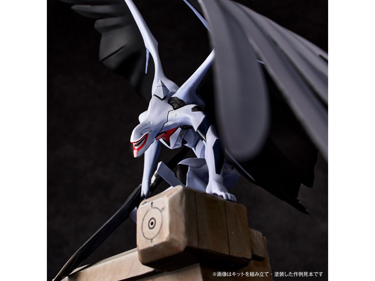細身ながらも筋肉質な身体とぬらりとした頭部、展開した背中の巨大な羽が美しい本商品は谷明(株式会社OZ)の原型を使用。