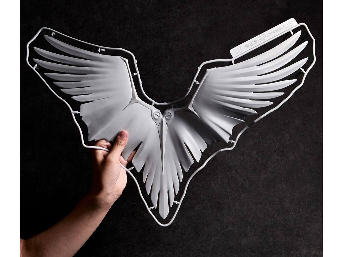 特徴的な羽(全幅470mm)は1パーツで成型し、見た目の美しさと組み立ての頑丈さを実現しました。