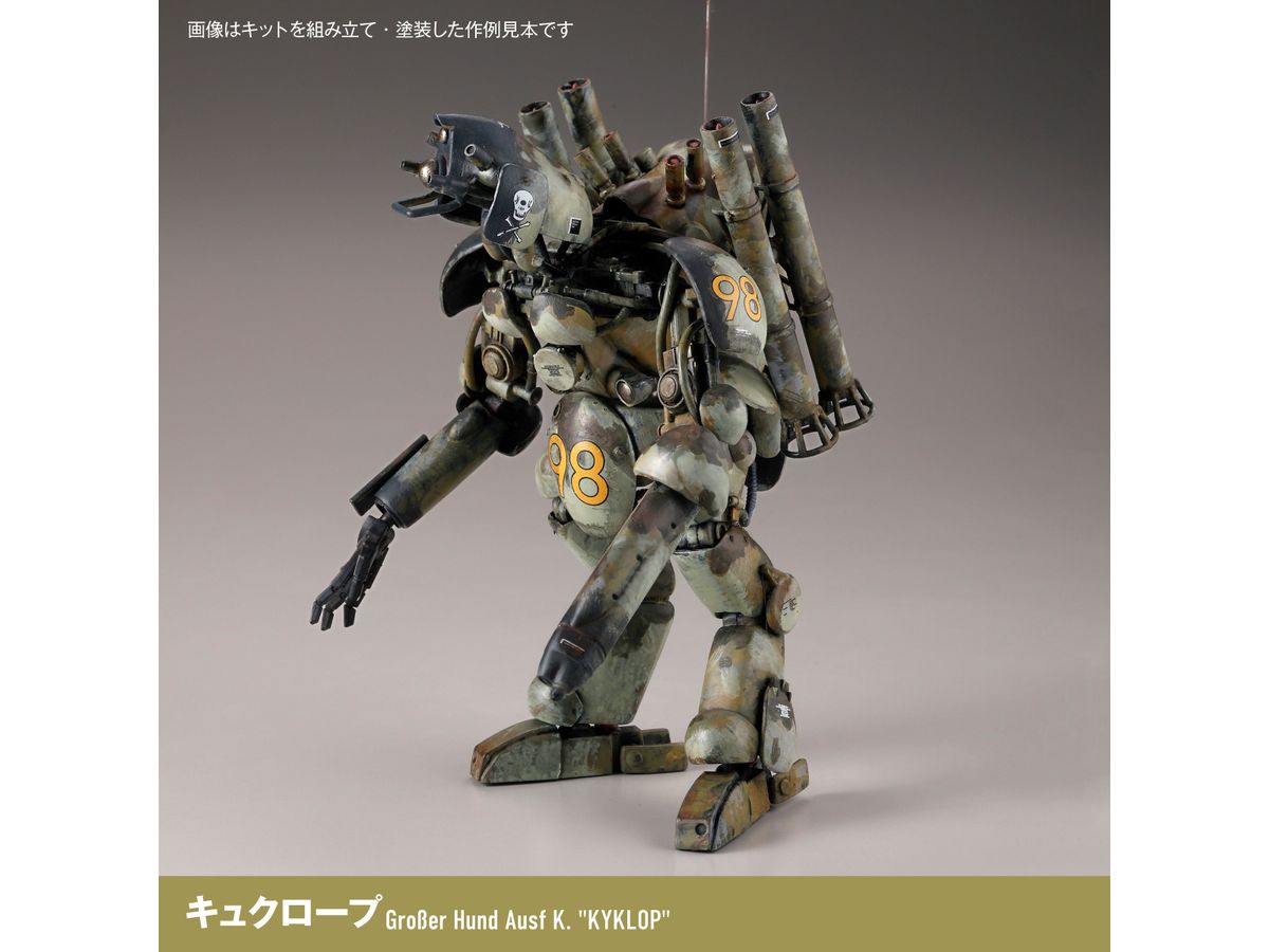 『Ma.K.』(マシーネンクリーガー)より、グローサーフントの武装強化型「ダックスフント・マスカレード・キュクロープ」が1/35スケールのプラスチックモデルキットになって新登場。