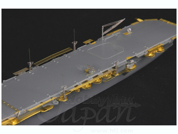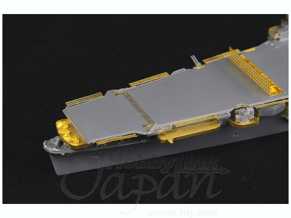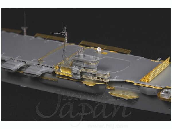 ・遮風柵や滑走制止装置、防護ネットなどの甲板まわりの部品のほか、マストやクレーン、各部の機銃座、電探などをエッチングパーツで再現しました。