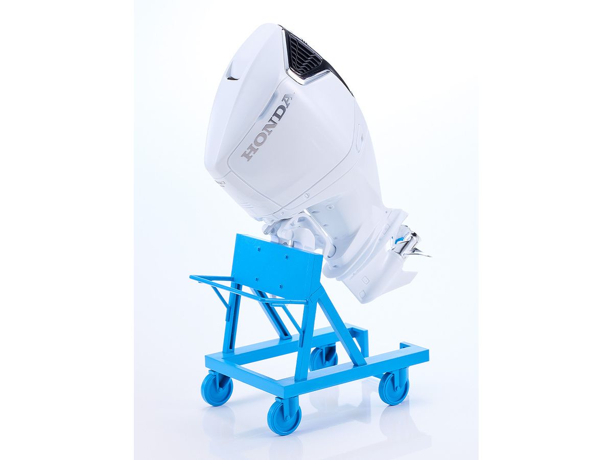 本田技研工業株式会社より発売中の4ストローク船外機におけるフラッグシップモデル、BF350と、同スケールで立体化した山下しゅんや氏によるオリジナルキャラクター「みのり」のプラモデルが装いも登場。