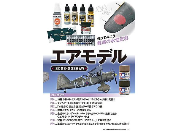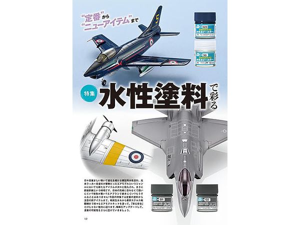 日々目覚ましい勢いで進化を続ける模型用水性塗料。元来ラッカー系塗料が優勢だったエアモデルというジャンルにおいても新たなアイテムが次々と投入され、まさに群雄割拠という様相です。日本の気候に合わなくて扱いにくい?発色が悪い?エアブラシで吹きにくい?もうそんなことはありません!今回の特集では定番の塗料から注目の新アイテムまで、戦前生まれから最新ステルス戦闘機まで様々なエアモデルキットを塗って、「安心安全」だけじゃない魅力に迫ります。情報をアップデートして、塗装の可能性をさらに広げていきましょう。