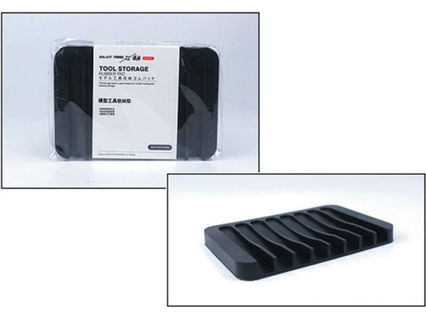 モデルカステンの新規取扱商品「GM-09 モデル工具収納ゴムパッド」は、模型製作に夢中になっていると散らばったり、転がってしまいがちなヤスリやピンセット、カッターなど工具の置き場として最適な台です。